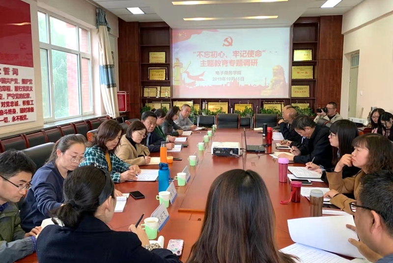 为推进主题教育工作深入开展,真正做到调查研究与职能职责相结合,与推进重点工作相结合,与解决师生反映强烈的突出问题相结合,推动学校持续健康发展,10月15日,由副校长郑志丽带队的主题教育调研组深入电子商务学院开展主题教育专题调研。学院领导班子成员、各科室负责人、教师和学生代表参加调研座谈会。