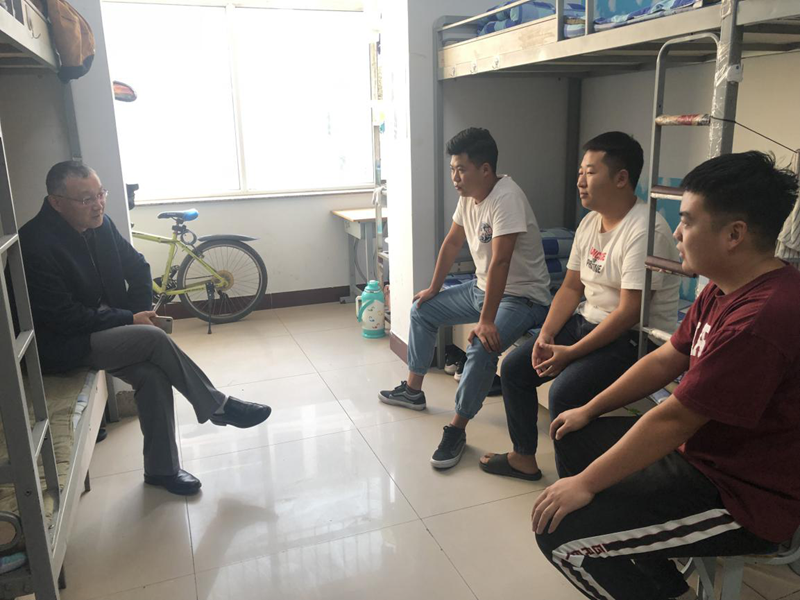 走访宿舍过程中,安海涛对同学们嘘寒问暖,详细了解了同学们在学习、生活、就业、社团活动以及学生党支部建设等方面的情况,对学生在个人成长中遇到的问题与困惑给出了建议。他勉励学生们认真努力学习专业知识,提升理论素养;积极主动寻找实践的机会,培养实践能力;进行独立的思考与判断,拓宽专业视野。学生党员更是要学以致用,敢于担当,真正在同学中发挥模范带头作用。