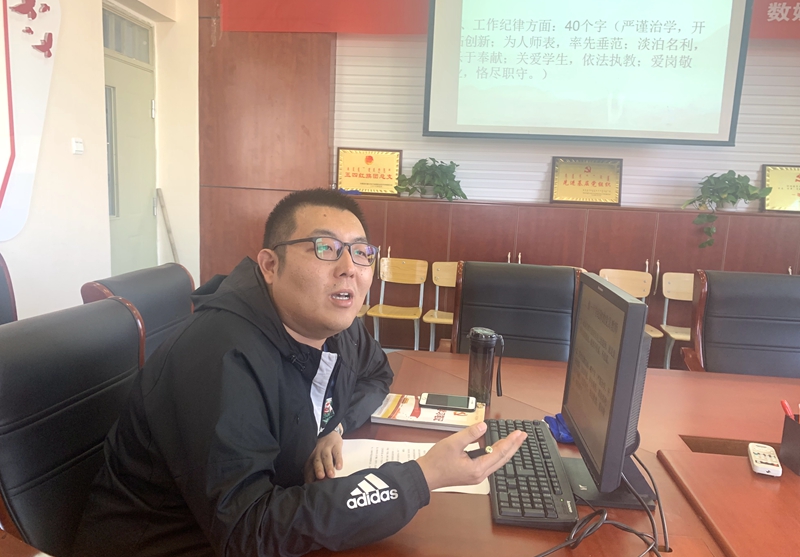 本次党课的主题为“做一个有信念、守纪律的党员教师”。武迪同志简要讲述了中国共产党的发展历程。列举了党史发展中的正反面范例,同时从教师工作实际出发,讲述近几年工作中遇到的教育教学典型案例。他强调,我们要知党史、尽党责,坚定信念,紧跟党的步伐,严谨治学、开拓创新、率先垂范、淡泊名利、爱岗敬业、关爱学生,在工作中加强意识形态建设,注重学生意识形态教育。