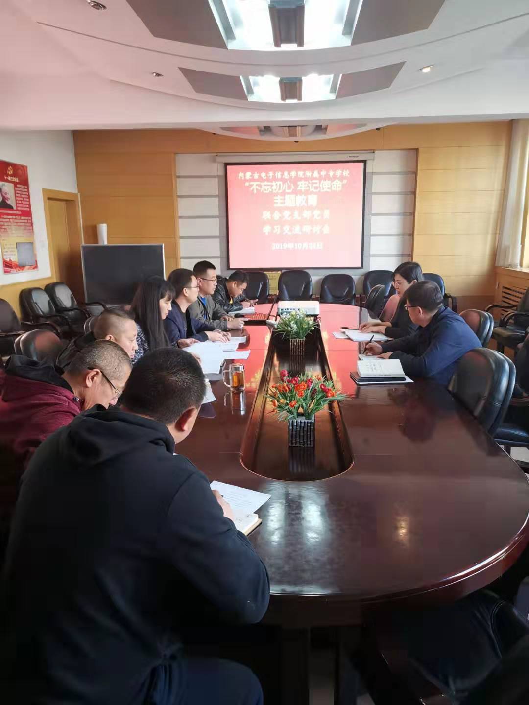 按照“不忘初心、牢记使命”主题教育日程安排,10月24日下午,附属中专联合党支部全体党员召开了主题教育党员学习交流研讨会议。
