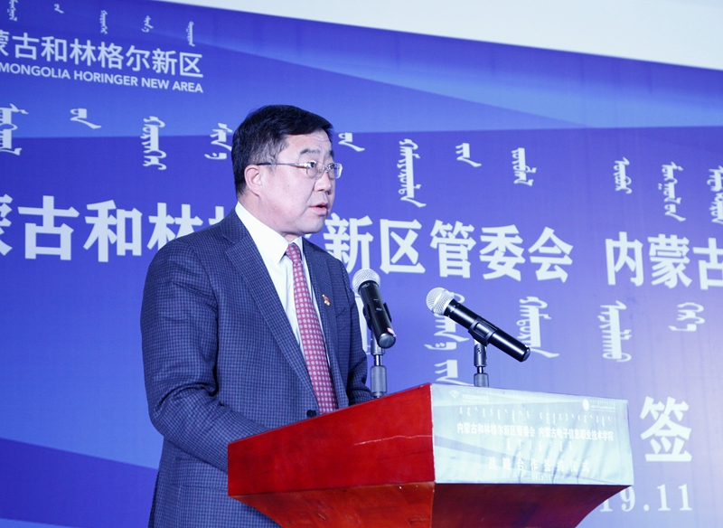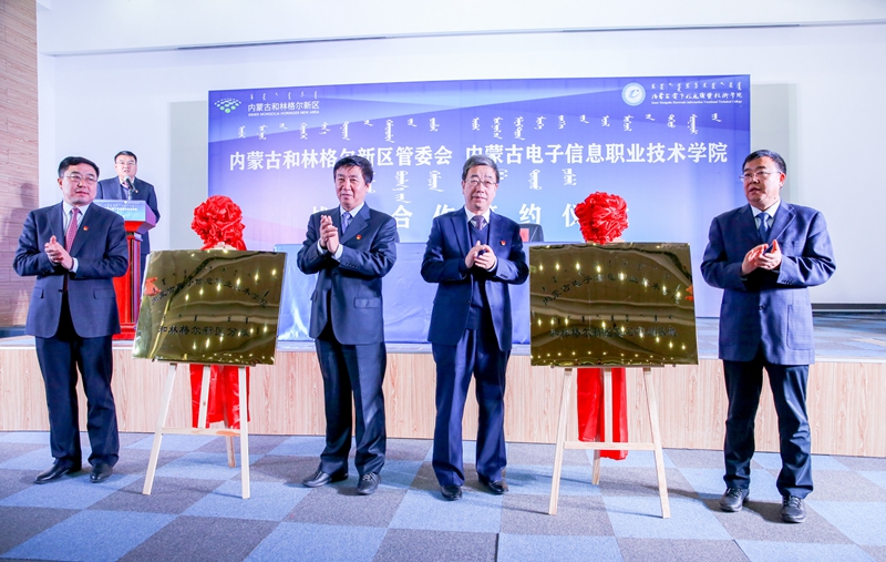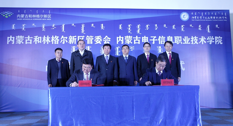 11月15日上午,我校与内蒙古和林格尔新区管委会在和林格尔新区举行战略合作签约仪式,并为内蒙古电子信息职业技术学院和林格尔新区分校,内蒙古电子信息职业技术学院和林格尔新区实习实训基地入驻新区入驻新区揭牌。