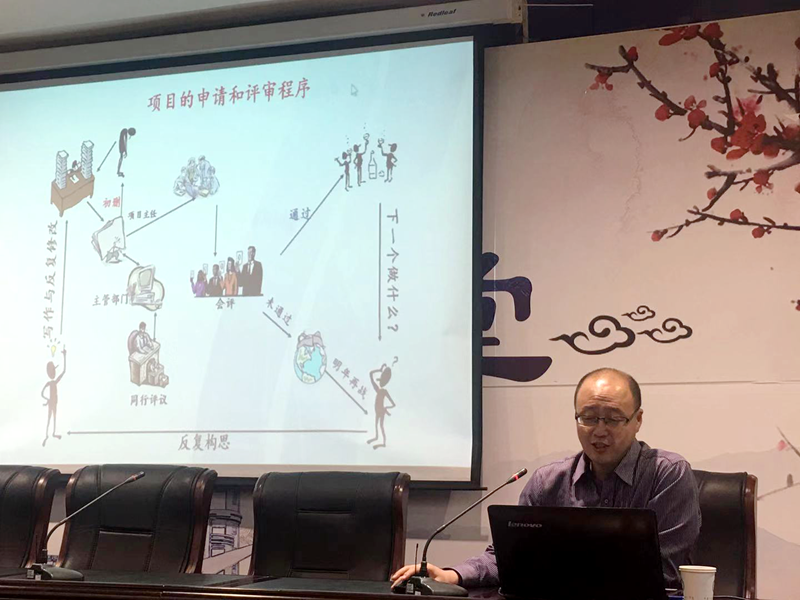 刘利强教授站在项目管理的角度上,从教研和科研的定义、常规科研项目申报流程、申请书撰写相关问题三个方面为老师们做了认真的讲解,用具体的案例,生动的语言使在座的各位老师受益匪浅。