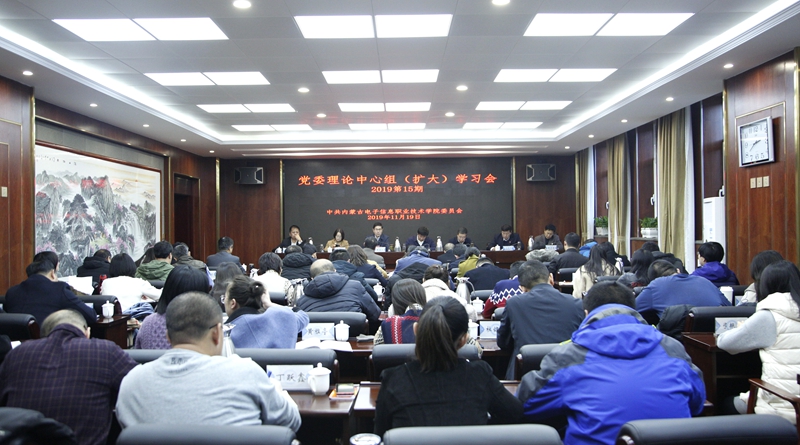 11月19日下午,学院党委理论中心组(扩大)召开2019年第十五次集体学习会议。学校全体党委委员和副处级以上干部参加会议。会议由党委副书记、纪委书记张涵义主持。