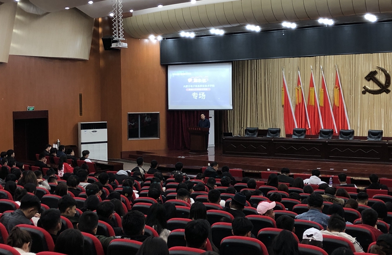 讲座中,吴小龙首先针对近日职场技能培训的课堂效果、学生表现,针对顶岗实习、毕业就业中存在的成长困惑,逐一答疑解惑。对模拟面试学生存在的共性的问题梳理进行梳理,并复盘典型模拟面试学生的表现。随后向同学们讲述了他在电子学院学习的过程,他的大学生活以及萌发创业想法的原因,他认为意愿、方法、行动是创业的三要素,在创业过程中要给自己一个非创业成功不可的理由来支持自己前行,同时要学会理性的选择,感性的坚持。
