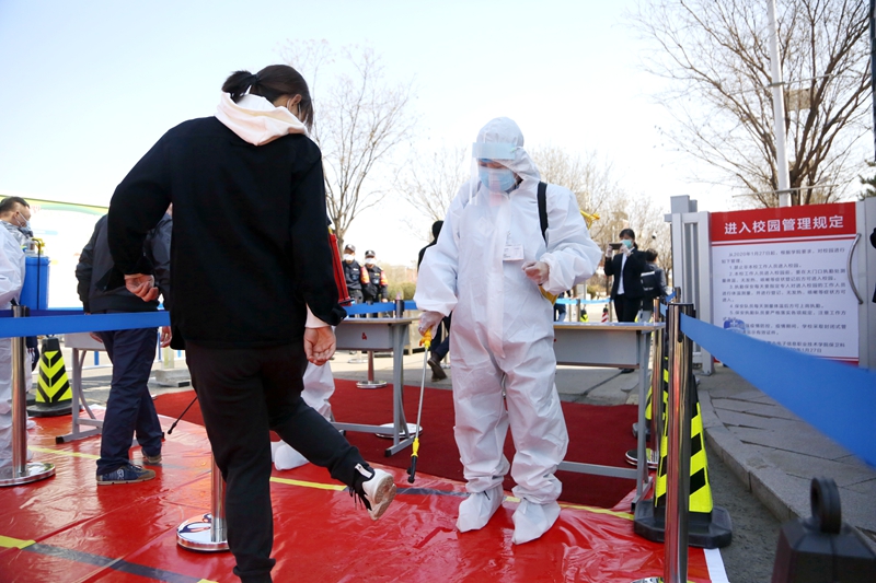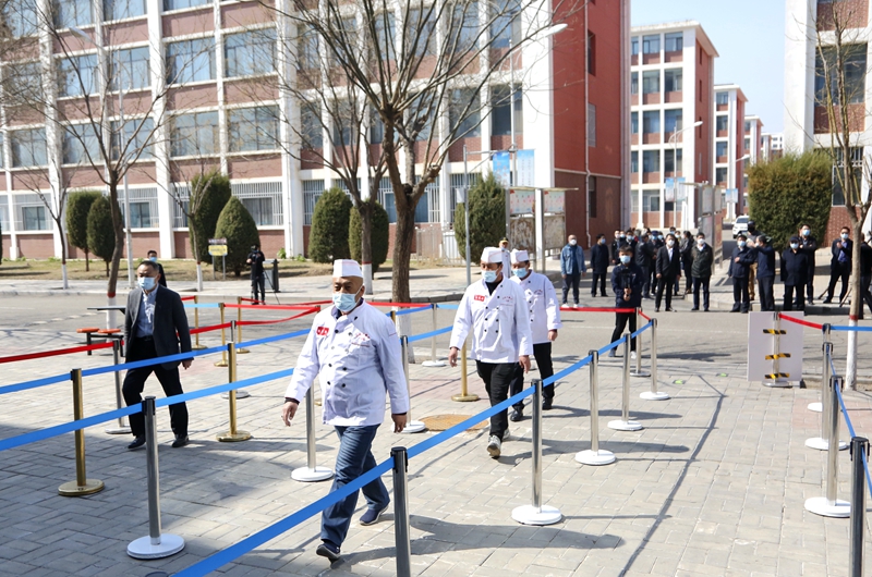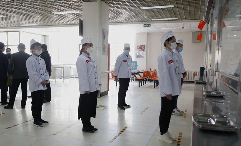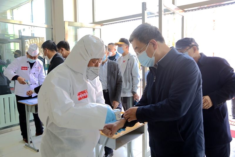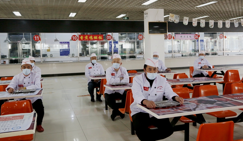 全体校领导,在校教师扮演学生,工作人员为开学后从事相关工作的固定人员,本次应急演练按流程从学生入校接受身份识别、体温监测、消毒处理、进入宿舍、学生间隔就餐以及发生体温异常的应急处理、学校隔离室的应用等情况逐一进行了演练,充分检测了学校防疫应急预案的有效性和可行性。