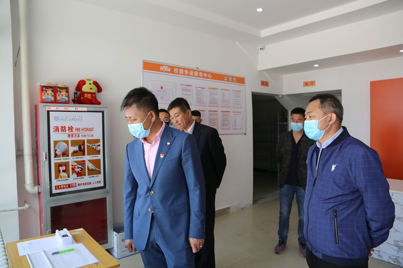 5月12日上午,学校党委委员、宣传部部长兼工会主席李占岭,后勤管理处处长宋国松,副处长孙凤龙与内蒙古近邻宝科技有限公司内蒙区负责人姚兵等人,对我校校园快递服务中心进行了检查验收。此次验收着重检查了校园快递服务中心的运营、消毒、安全防护等并体验了快递柜的使用。