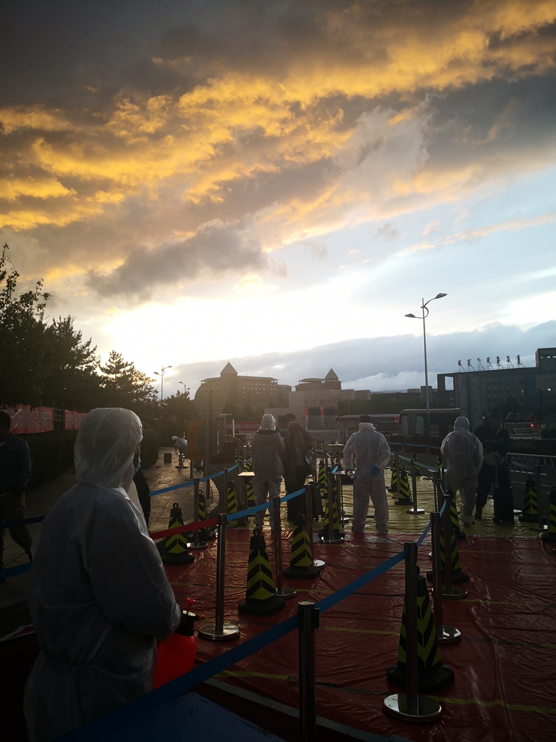 22日白天,穿着防护服的老师们出了一身汗水,当日夜晚,又因风雨的交加变成了一身冷水;已经有两日都精神高度紧张的易班的学生志愿者们,仍旧早早出发,奔赴各自负责的接站点;学生工作处的老师们全员出动,在接站点,在入口处,在公寓楼,在餐厅中心,在一切学生随时需要就能出现的地方;校医室的白衣天使们有的甚至彻夜未眠随时准备处理在检测过程中出现的紧急状况;因为班级里有一名同学身体不适,软件1951班级班主任刘磊凌晨五点才在库房里眯了一觉;防疫指挥部的多名组长一直在一线指挥,处理随时可能出现的问题。