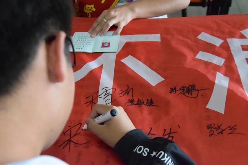 “一粥一饭当思来之不易,半丝半缕恒念物力维艰。”餐厅入口处拉起横幅,吸引了大家的广泛关注,纷纷签名,用实际行动参与到“爱粮节粮”行动中,自觉践行“节俭风尚、厉行节约、文明用餐”的良好习惯。