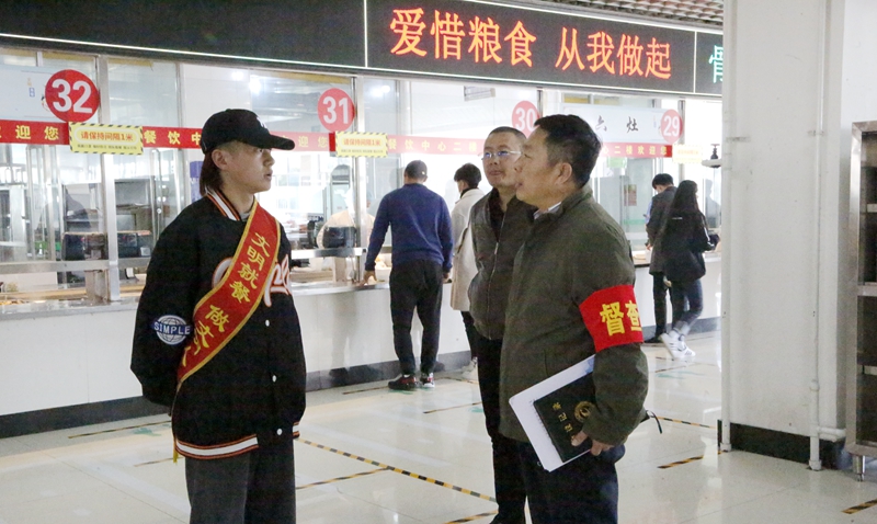 10月14日,由学校党委委员、组织统战部部长张宏俊,组织统战部副部长郑凤,党政办公室副主任郭金友和团委书记刘泽利组成的“节约粮食、反对餐饮浪费”督查指导组深入学校餐饮中心、学生宿舍、二级学院开展校内督查工作。