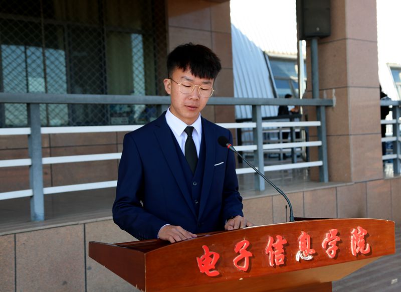 新生代表软件与大数据学院软信2051班孙国强发言同学代表全体新生发言,他说,作为新时代的大学生,当顺应历史潮流,不负伟大时代,从历史文化中汲取力量、拓展胸襟视野、确立崇高信仰。