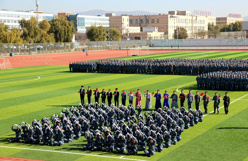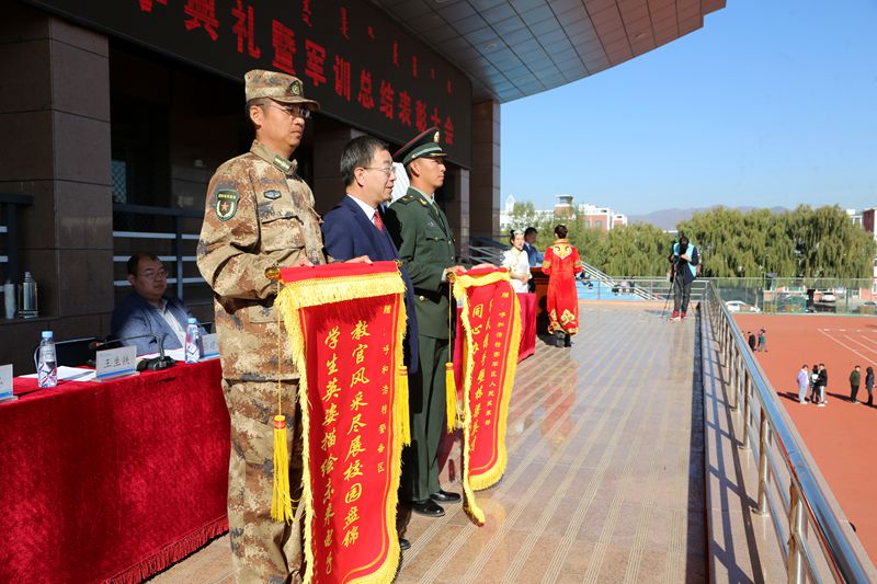 王生铁向承训部队呼和浩特警备区、呼和浩特赛罕区人民武装部赠送锦旗,感谢承训部队对我校军训工作的大力支持。