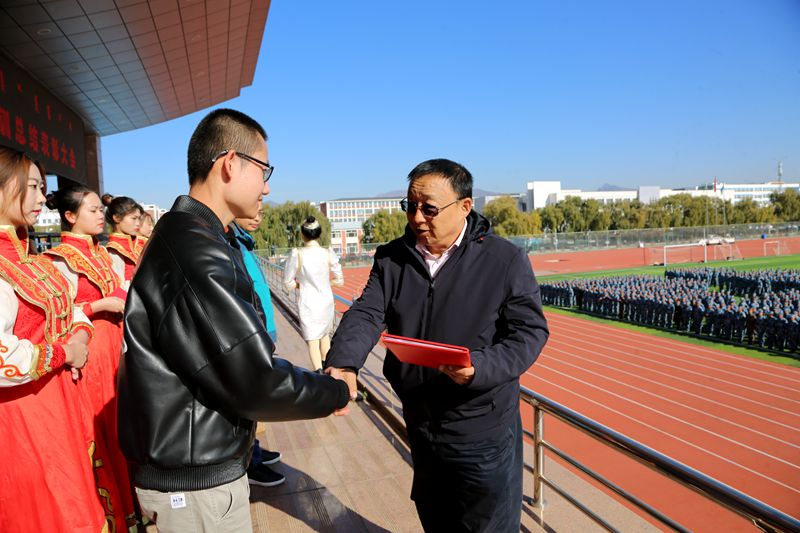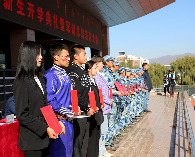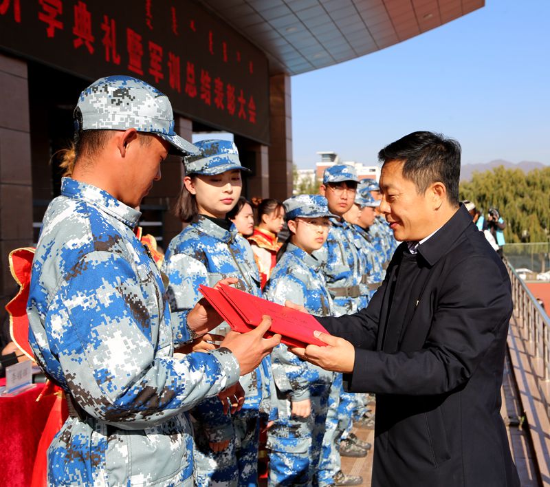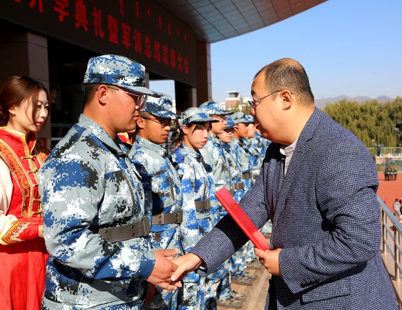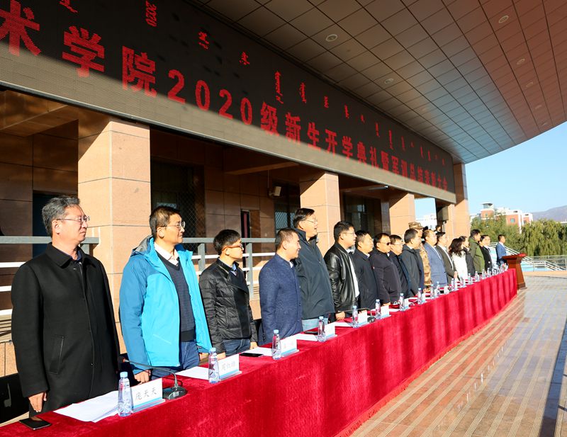 10月24日上午9:00,内蒙古电子信息职业技术学院2020级新生开学典礼暨军训总结表彰大会隆重举行。学校党委副书记、校长王生铁,党委委员、副校长蒋蒙安,党委委员、组织(统战)部长张宏俊,党委委员、宣传部长兼工会主席李占岭,内蒙古创维智能科技有限公司总经理张弘,内蒙古TCL光电科技有限公司总经理雷磊,内蒙古晶新科技有限公司研发部经理木华来,全体承训官兵,党政办公室、教务处、学生工作处以及双创学院主要负责人,各二级学院党总支书记、院长,教师代表,2020级全体新生参加大会。大会由李占岭主持。