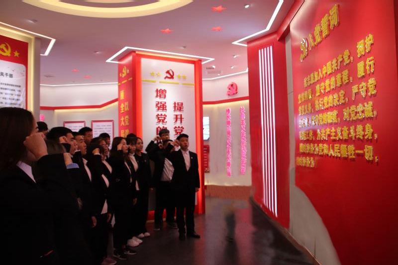 活动最后,全体党员在恼包村党建中心重温入党誓词。在鲜红的党旗下,党员同志们庄严地举起右手,握拳宣誓,重温入党誓词,铭记入党初心。