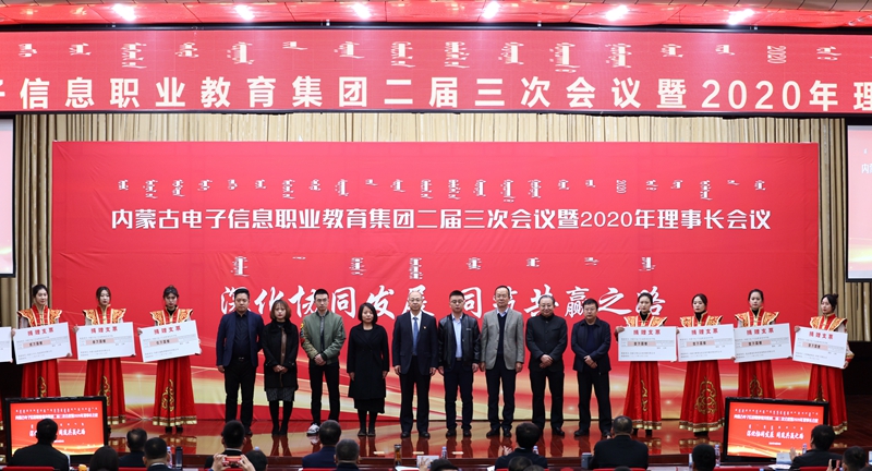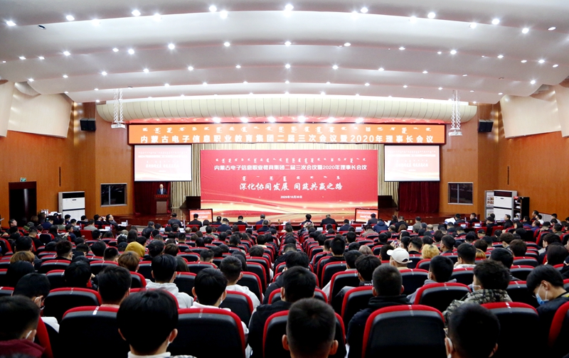 随后,按照《内蒙古电子信息职业教育集团章程》规定及第二届一次会议决议,以“深化协同发展·同筑共赢之路”为主题的内蒙古电子信息职业教育集团第二届三次会议暨2020年理事长会议隆重召开,北京信息职业技术学院校长助理张海建应邀出席,内蒙古人力资源公共服务中心主任谢遵国、呼市人才服务中心主任邢满红、内蒙古工程学校校长何铁彪、内蒙古创维智能科技有限公司总经理张弘、内蒙古晶新科技有限公司张日新等来自政府、行业、科研机构、企业的职教集团成员代表,及学校党委领导班子全体成员、教师代表等共计200余人参加了本次大会。