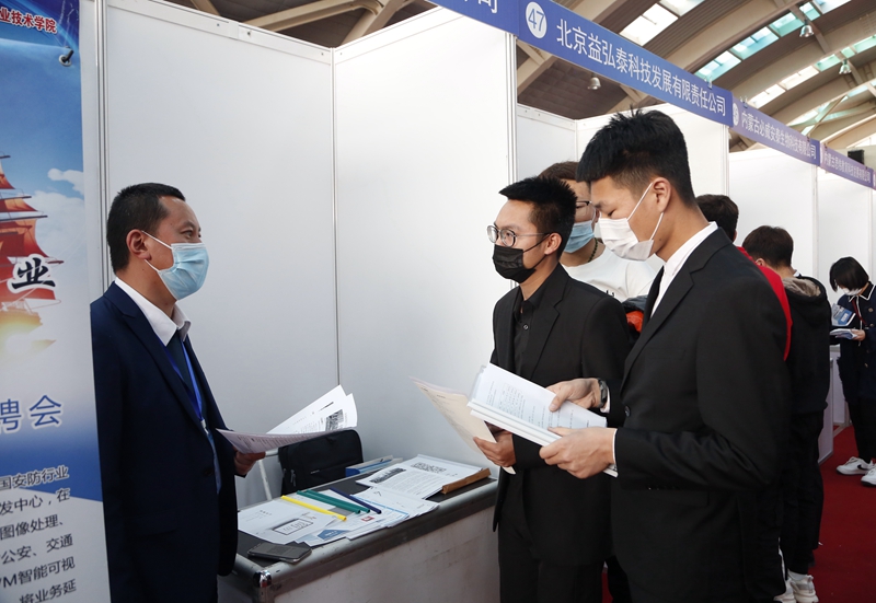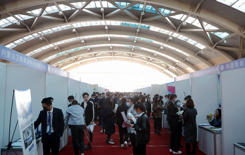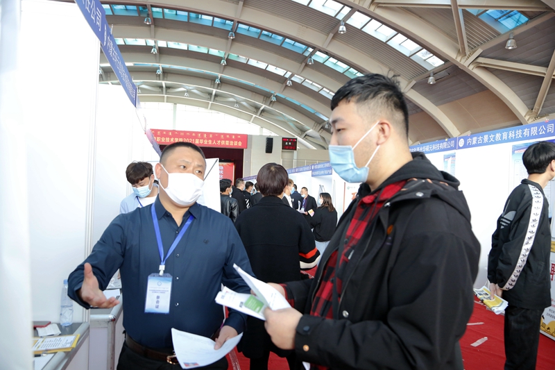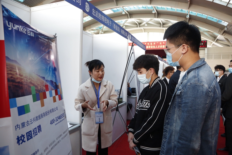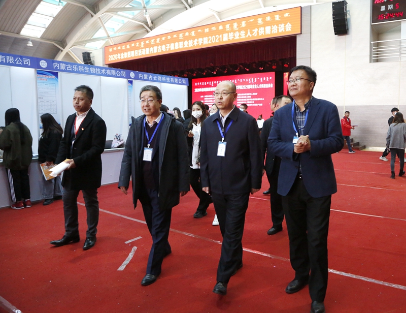 同时以职教集团及本次会议为依托,10月30日下午,以“稳就业政策助力·保就业服务筑桥”为主题,由内蒙古人社厅、内蒙古退役军人事务厅、内蒙古总工会、内蒙古工商联主办,内蒙古人力资源公共服务中心、内蒙古高校毕业生就业指导中心、内蒙古和林新区管理委员会、呼市人才服务中心等多家单位协办的2020年金秋招聘月活动暨内蒙古电子信息职业技术学院2021届毕业生人才供需洽谈会在学校文体中心二楼举行。来自区内外各类国有企业、独资企业、上市公司、大中型企业等142家用人单位,提供了涵盖电子信息、智能制造、生物科技、网络技术、航天信息、软件开发等领域的招聘岗位503个,现场共3070名2021届高校毕业生入场参会。在本次人才供需洽谈会上,投递简历8388人次,与企业达成初步就业意向4719人次,搭建了高校毕业生求职择业与优质企业人才需求的双选服务平台,进一步拓宽就业渠道、稳定就业形势、缓解就业压力,实现内蒙古电子信息类高校毕业生更高质量和更充分就业。