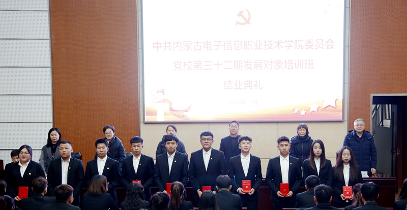 会上,首先由组织统战部组织科科长李瑛宣读《中共内蒙古电子信息职业技术学院委员会党校关于授予第三十二期发展对象培训班学员结业证书和表彰优秀学员的决定》,并由参会领导依次为结业学员代表、优秀学员代表颁发证书。其次,优秀学员代表——计算机与网络安全学院张海成同学分享培训心得。再次,张宏俊部长总结发言。一是感谢对培训班给予大力支持的领导、幸勤付出的老师及学生干部。二是祝贺学员们成功结业,进一步向党组织靠拢。三是希望学员们坚定信念,传播向上向善的社会正能量;矢志不渝,担当青春使命共筑美丽中国梦;三省吾身,时刻做好模范表率。最后,结业典礼在《国际歌》歌声中落下帷幕。