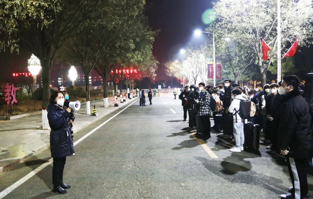 凌晨3点的校园热闹起来,学校党委书记李春燕,党委副书记、校长王生铁现场指挥,核对信息、沟通对接、确定车辆、协调转运.老师们彻夜不眠的忙碌,迎来了同学们的整装待发。怀揣着对学生的牵挂,老师们热泪盈眶,与你挥手告别,只愿护你平安返乡。