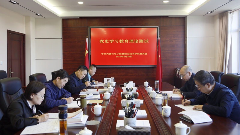 专题研讨后,学校党委领导班子成员、全体副处级以上干部分别在322会议室、1号会议室和2号会议室进行了党史学习教育新民主主义革命时期历史理论测试。