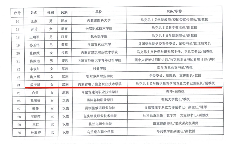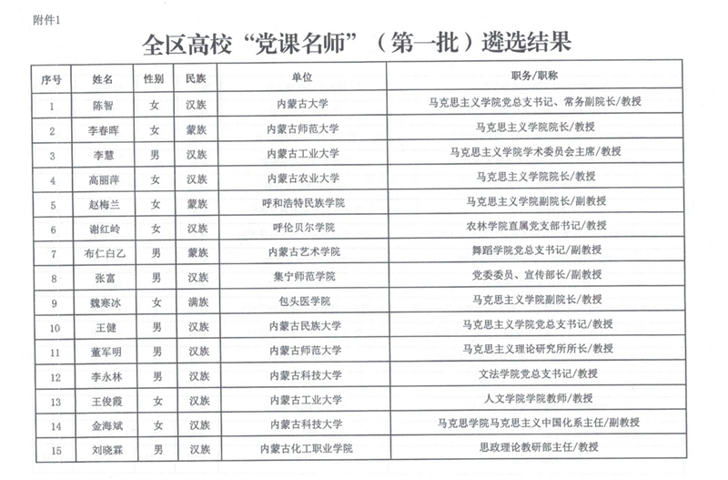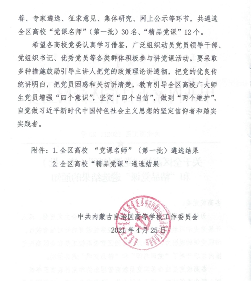 近日,为认真学习贯彻习近平新时代中国特色社会主义思想,深入开展党史学习教育,不断提高党员经常性教育的针对性有效性,增强党课的吸引力、感染力,自治区党委高校工委在全区高校范围内组织开展了“党课名师”和“精品党课”遴选活动。其中,共遴选全区高校“党课名师”(第一批)30名,我校马克思主义与通识教育学院党总支书记兼院长孟庆新入选全区高校“党课名师”。
