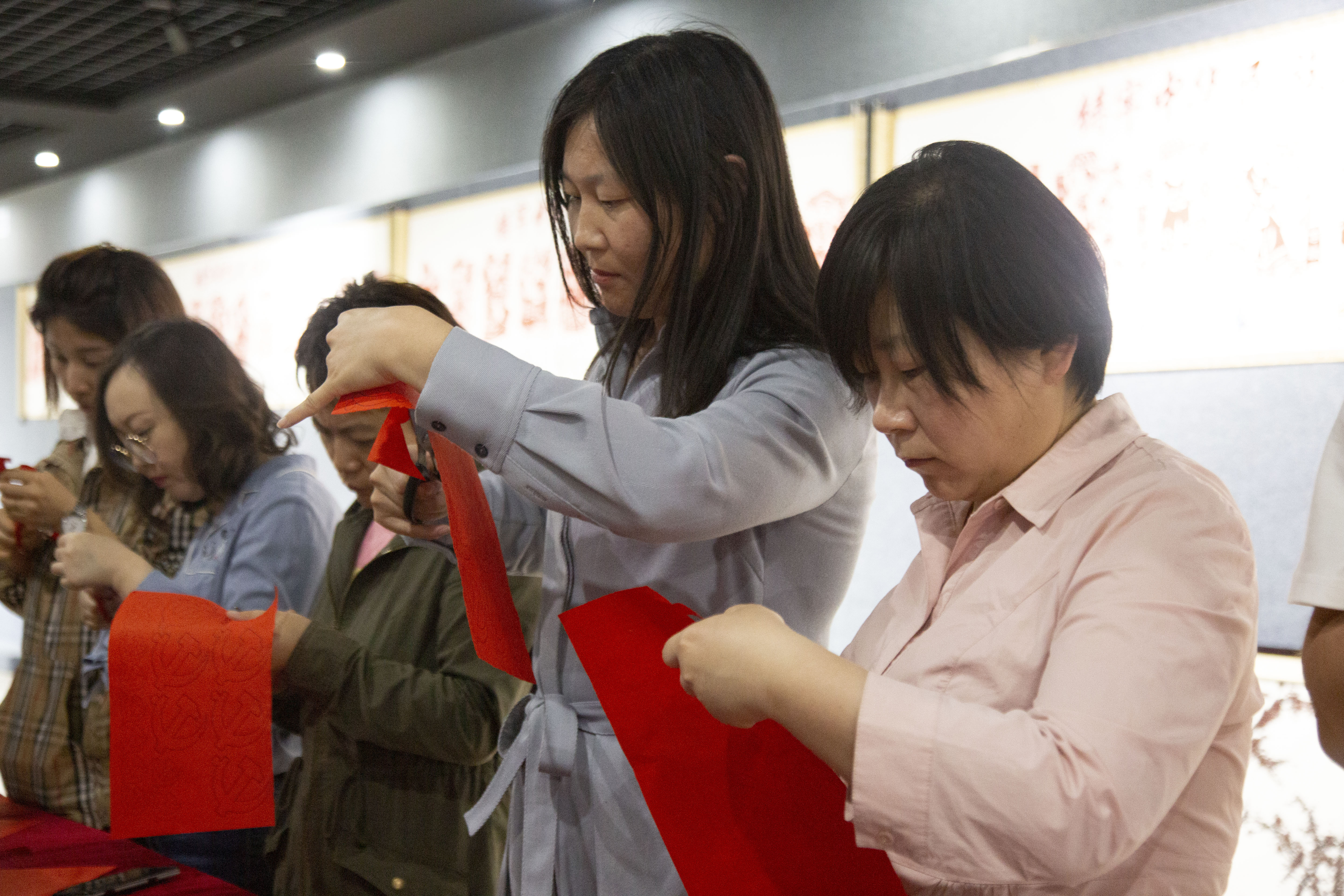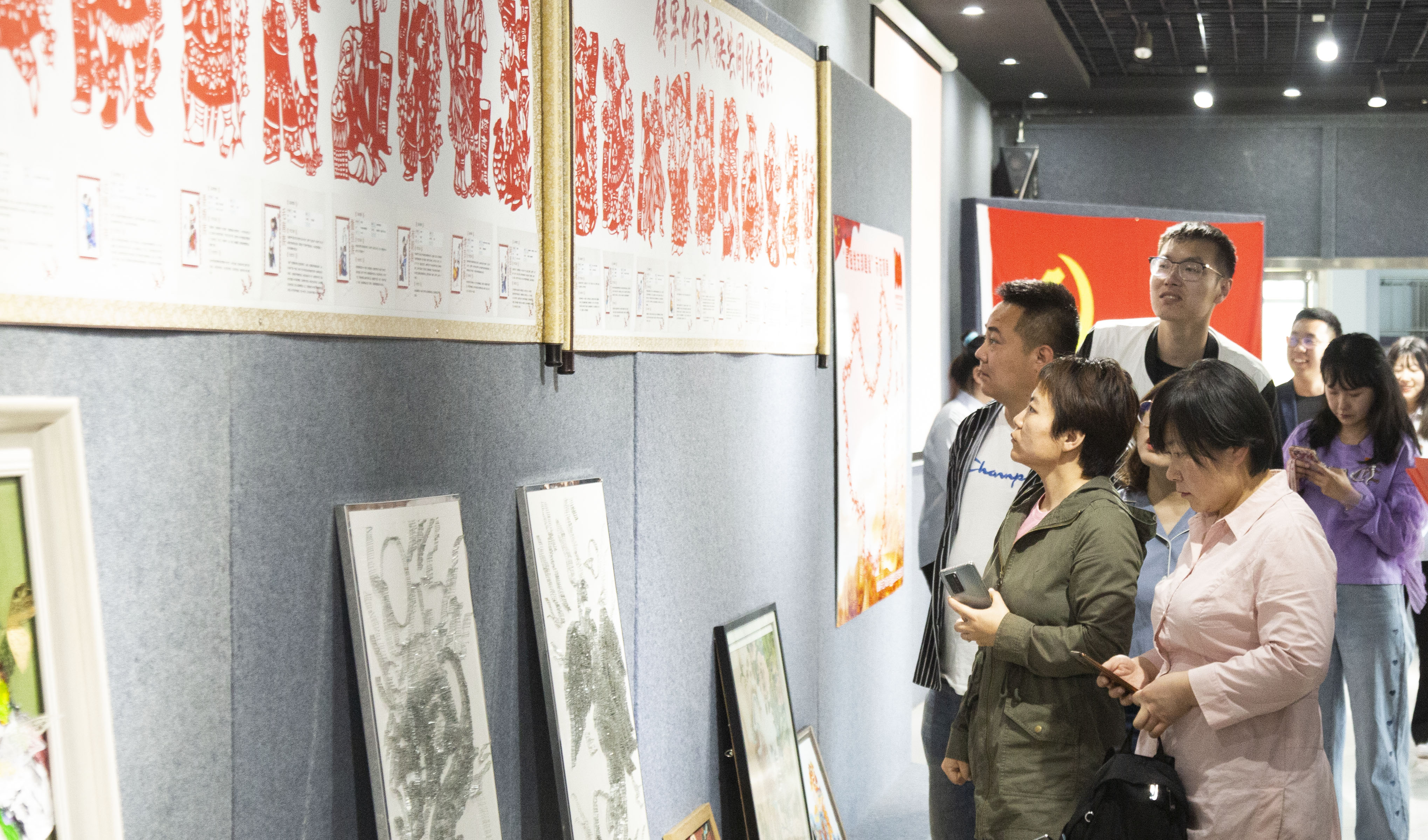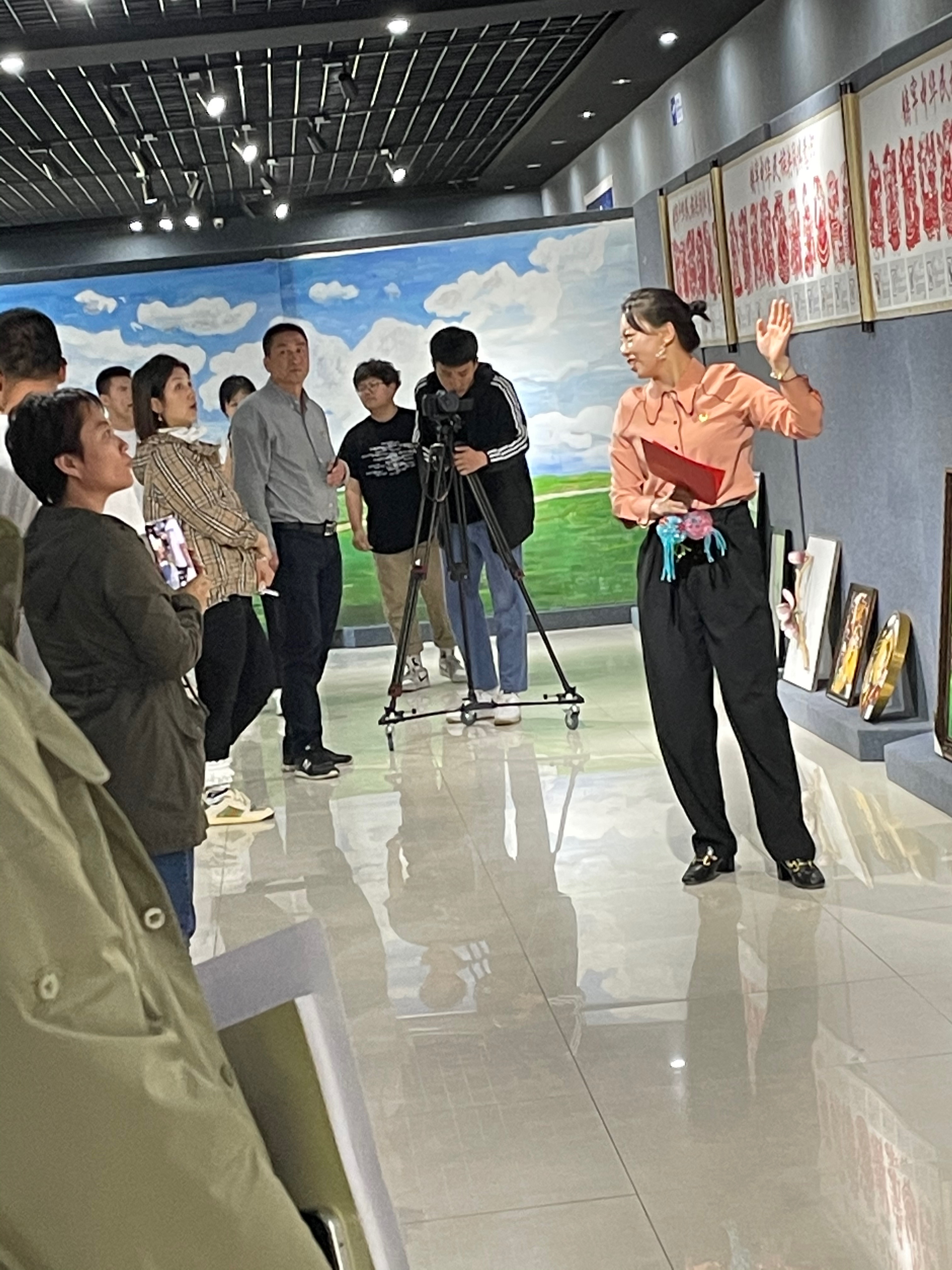 再次,梁术红同志带领参会人员来到文化艺术长廊,共同参观学习“铸牢中华民族共同体意识”剪纸展览。梁术红同志对展览的各民族情况进行了详细的介绍和讲解。在有奖竞猜活动中,同志们再次重温了各族人民在党的领导下,共同建设中国特色社会主义国家取得的伟大成就。