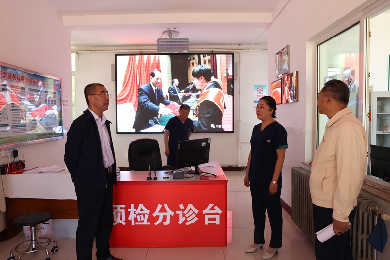 恩和门德来到学校校医室慰问医务室全体医护人员,对校医室在抗击新冠疫情工作上取得的成绩表示祝贺,并对疫苗接种、日常工作等进行了解询问。