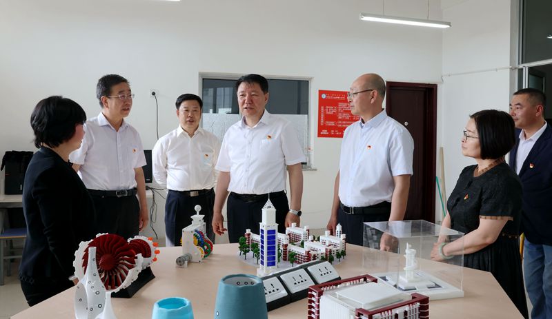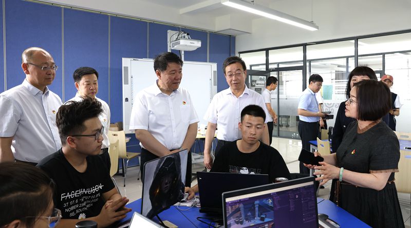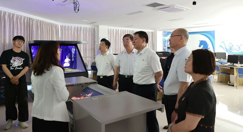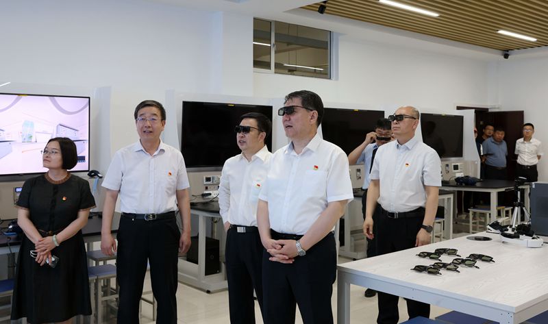 报告会后,奇巴图在学校领导的陪同下来到学校电子与自动化学院无人机装调维修实训室、自动化专业基础虚实结合实训室、工业机器人操控编程与离线仿真实训室、快速成型及逆向工程实训室和软件与大数据学院大数据与人工智能实训基地、民族数字化开放工匠工坊和蒙古族文化数字化应用开发创新中心进行实地调研。并对学校在教育教学改革、民族团结进步、招生就业、校企合作、创新创业工作、服务地方经济社会发展等情况进行详细了解。