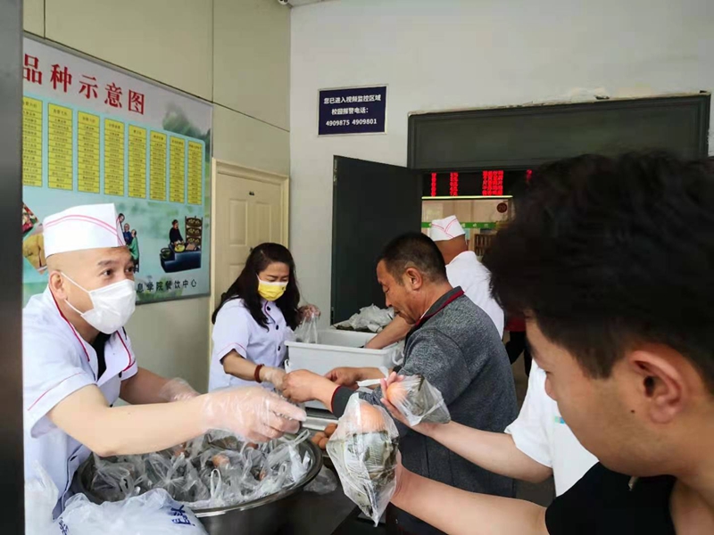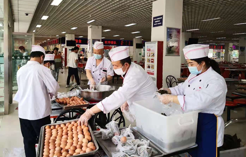 6月11日早晨七点,后勤党总支第一党支部的党员代表和餐饮中心的师傅们站在食堂的出入口,将已进行独立包装的热腾腾的粽子和鸡蛋递给前来就餐的老师和学生们,并送上他们暖暖的端午祝福,让师生们倍感惊喜与温暖。
