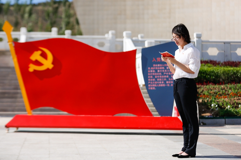 在庄严的人民英雄纪念碑下,面对鲜红的党旗,党务行政党总支书记王凤岐带领全体党员重温入党誓词。后勤党总支党员代表尹昱宣读党员义务与权利。