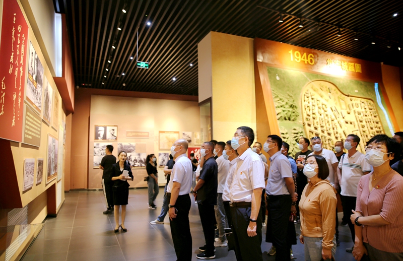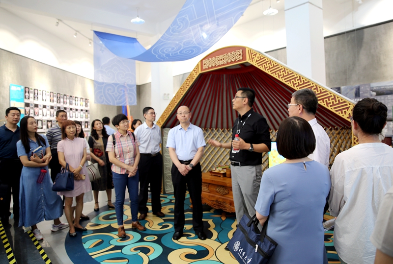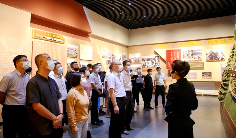 为深入学习贯彻习近平新时代中国特色社会主义思想,贯彻落实党的十九大和十九届二中、三中、四中、五中全会精神,扎实开展党史学习教育,进一步强化干部队伍干事创业、履职尽责、担当作为,培养造就忠诚干净担当的高素质干部队伍,提高干部的政治素质和履职能力,凝心聚力落实学校中心工作和各项建设任务,推动学校高质量发展,按照校党委关于暑假期间开展处科级干部重点培训工作的安排部署,校领导班子成员和处科级干部集体赴内蒙古师范大学国际设计艺术学院和乌兰察布市集宁战役馆、党史馆进行参观学习。