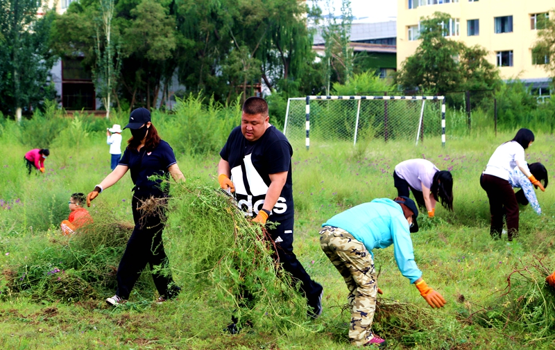 为进一步改善校园环境,迎接40周年校庆,深入推进“我为群众办实事”实践活动,切实把党史学习教育转化为工作实效。学校于2021年7月28日上午开展“除蒿草 办实事 迎校庆”活动。学校党委副书记、校长王生铁,党委副书记张涵义,党委委员、副校长恩和门德,党委委员、组织(统战)部部长张宏俊及200余名教职工志愿者参加本次活动。