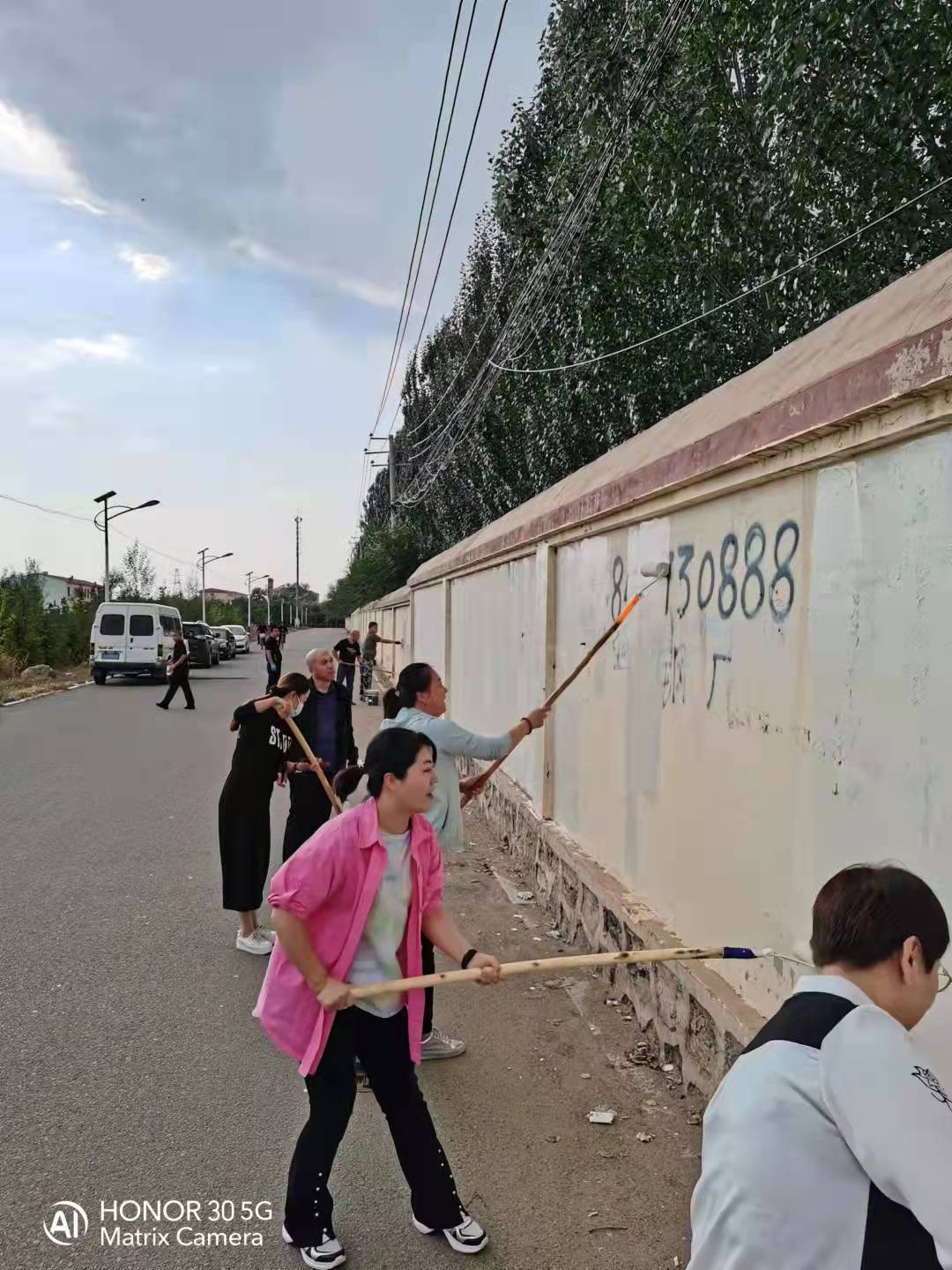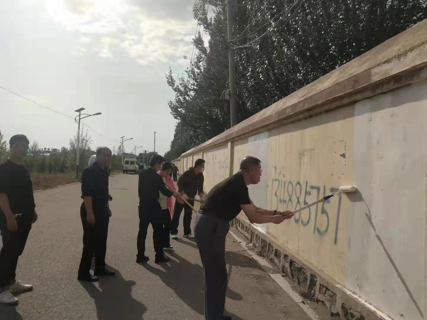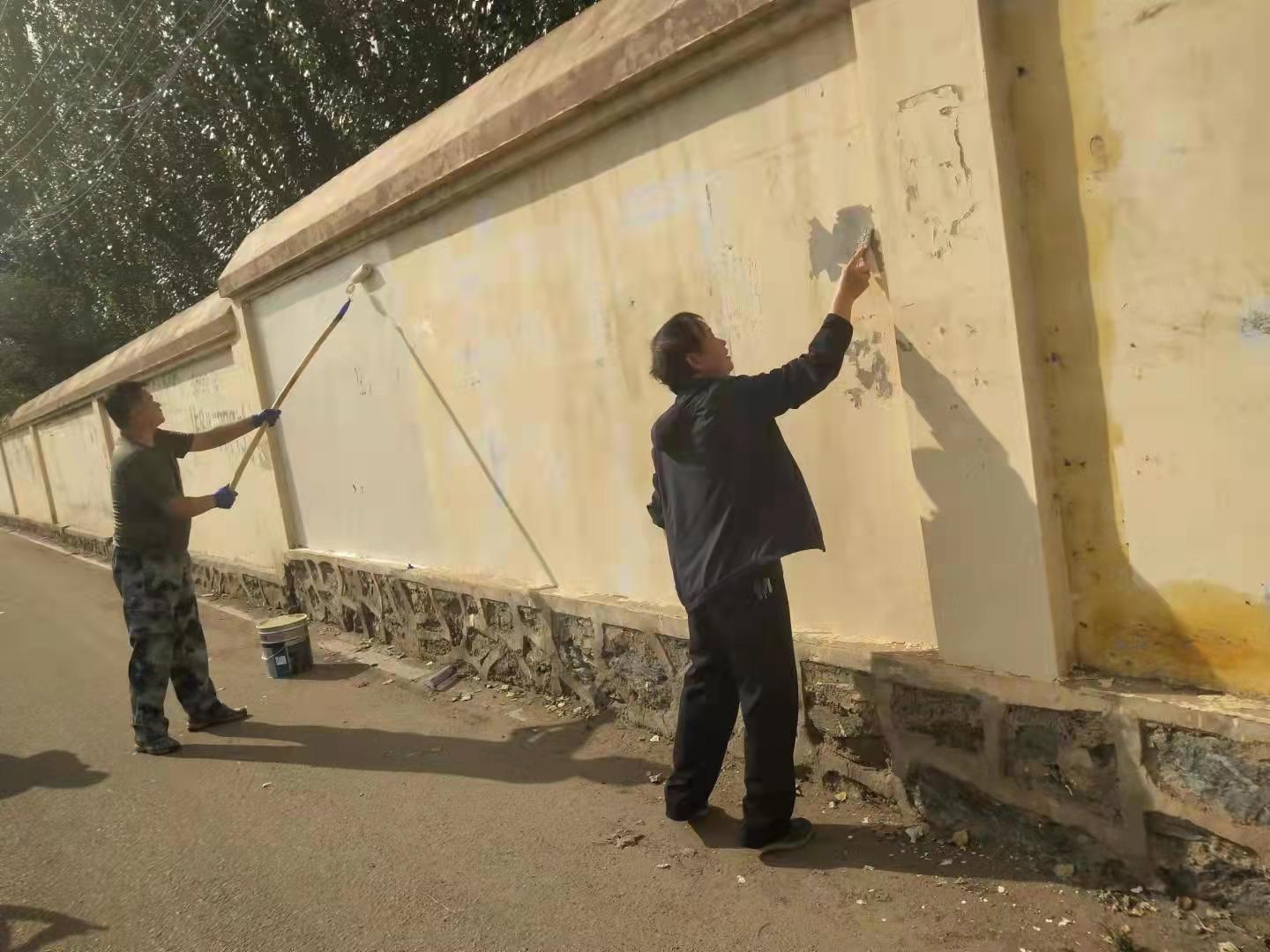 后勤党总支党史学习教育调研组深入一线调研时发现,学校南墙外墙墙面因常年粘贴涂鸦各类广告标语等已出现褪色脱皮,严重影响美观。为解决这一问题,后勤党总支合理规划,积极筹备,并于9月22日下午15时组织集中清理粉刷行动。
