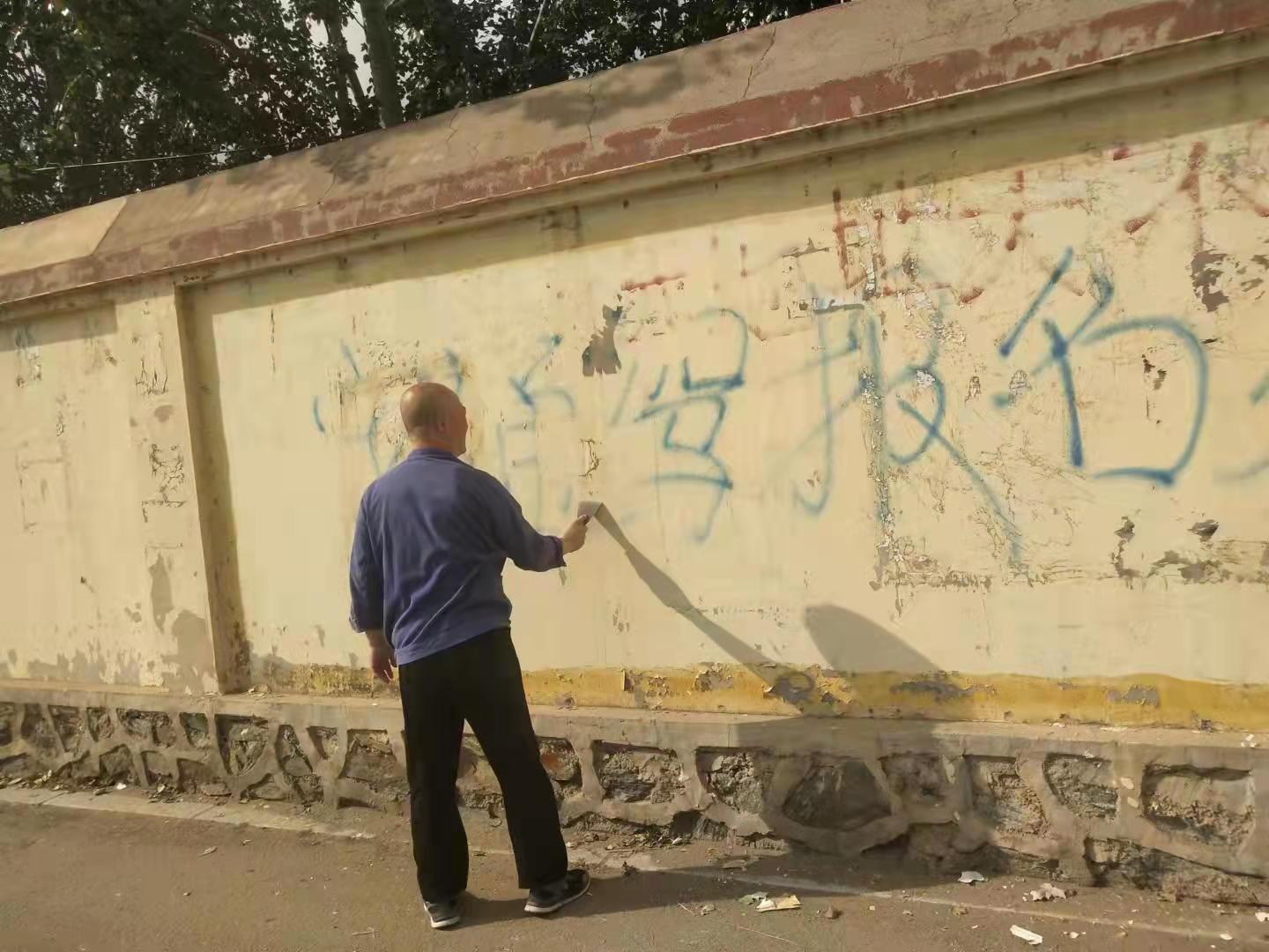 活动现场,志愿者们迅速分组、有序配合,有的负责用铲子、砂纸铲除打磨污渍痕迹,有的负责用滚筒刷逐层粉刷墙面,经过大家的共同努力,原本杂乱的墙面很快就焕然一新,使周围环境得到了有效的改善,为即将迎来四十岁生日的校园披上雪白的披肩。