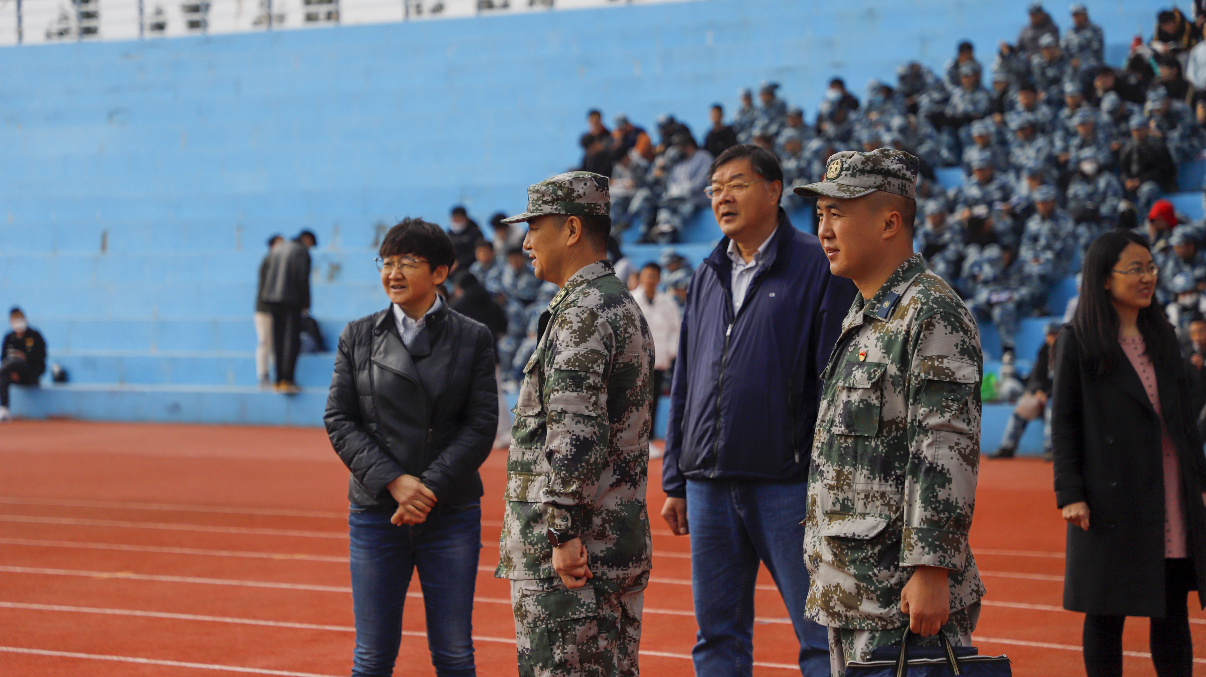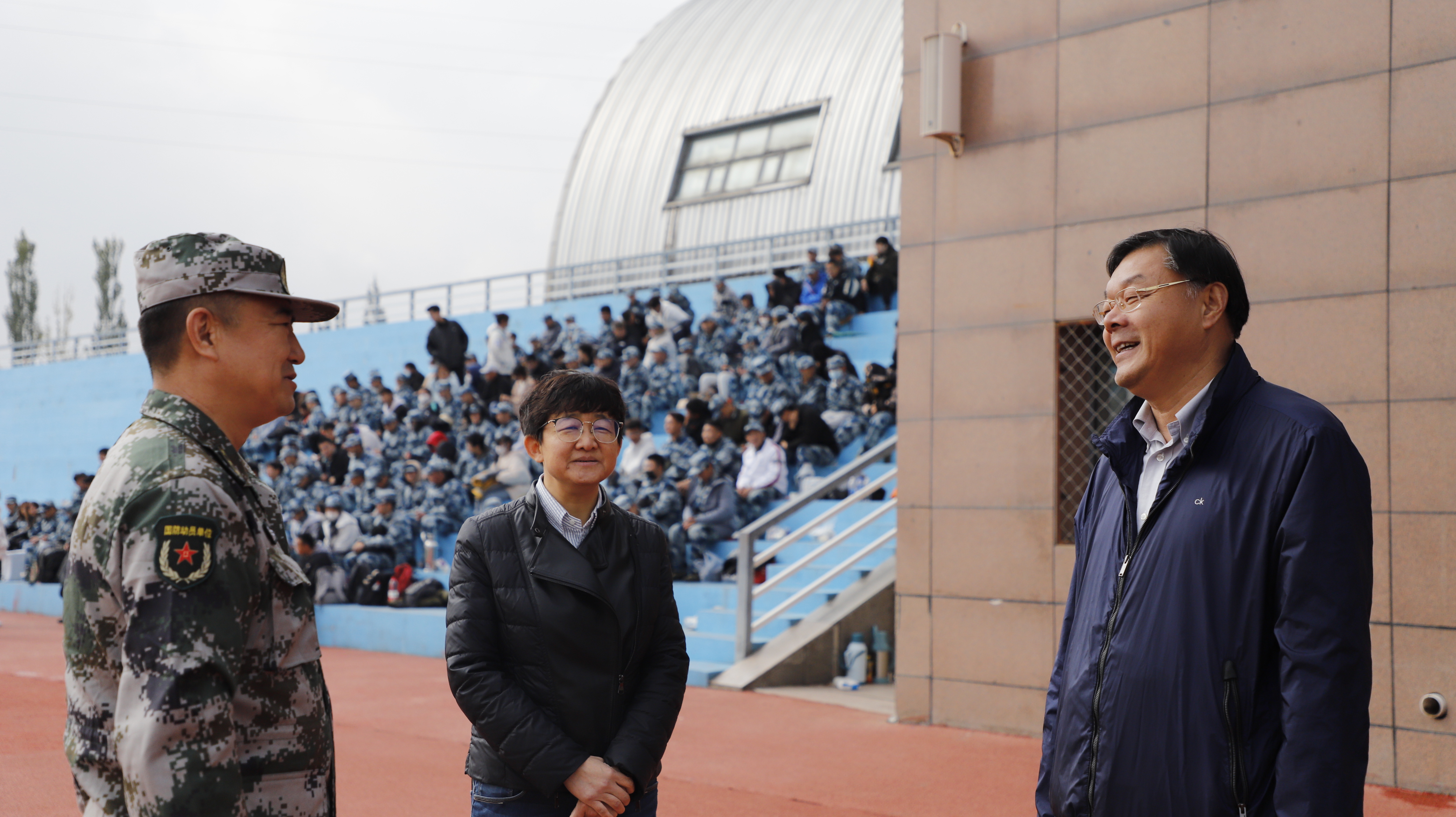 10月14日上午,内蒙古军区战备建设局参谋魏文军、赛罕区人武部部长韩铁刚、警备区战备建设处参谋张学智、赛罕区人武部军事科科长董晓廷来我校进行2021级新生军训情况调研,我校党委委员、副校长秦婷、学工处处长李耀辉、学工处副处长张学敏陪同调研。