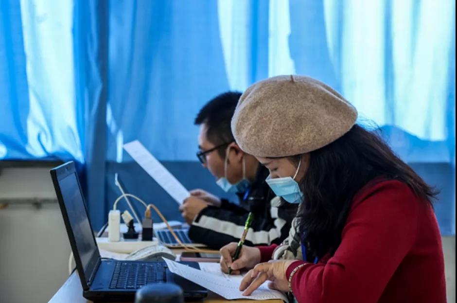 共有274名报考学生借助钉钉软件、职教云教学管理平台参加了本次线上考试,我校20名监考教师在5个监考室对本次线上考试全程进行了考试视频监考,每个监考室配备1名巡考。