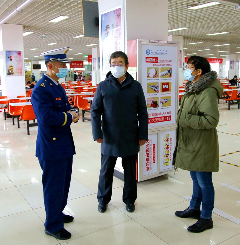 在“11.9”到来之际,为落实火灾隐患防控工作,深入推进平安校园建设,确保师生人身安全和财产安全,11月9日下午,学校党委书记李向东,学校党委副书记、校长王生铁,学校党委委员、副校长恩和门德、秦婷,安全保卫处全体教职工与大学城消防大队组成联合安全检查组,对学校食堂、学生宿舍楼等重要人员密集场所用电设施、消防设施、灭火器材配备进行了一次全面细致的火灾隐患安全大排查。