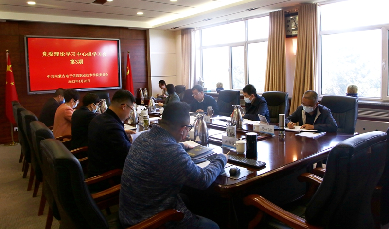 4月26日,学校党委理论学习中心组在行政楼322会议室举行2022年第三次集体学习,围绕新修订的《职业教育法》以及《中国共产党纪律处分条例》、习近平总书记在中央党校(国家行政学院)中青年干部培训班开班式上的重要讲话精神进行专题学习。学校党委副书记、校长王生铁主持集体学习会并讲话,学校党委副书记张涵义,学校党委委员、副校长郑志丽、恩和门德、秦婷,学校党委委员、纪委书记刘建英参加会议。