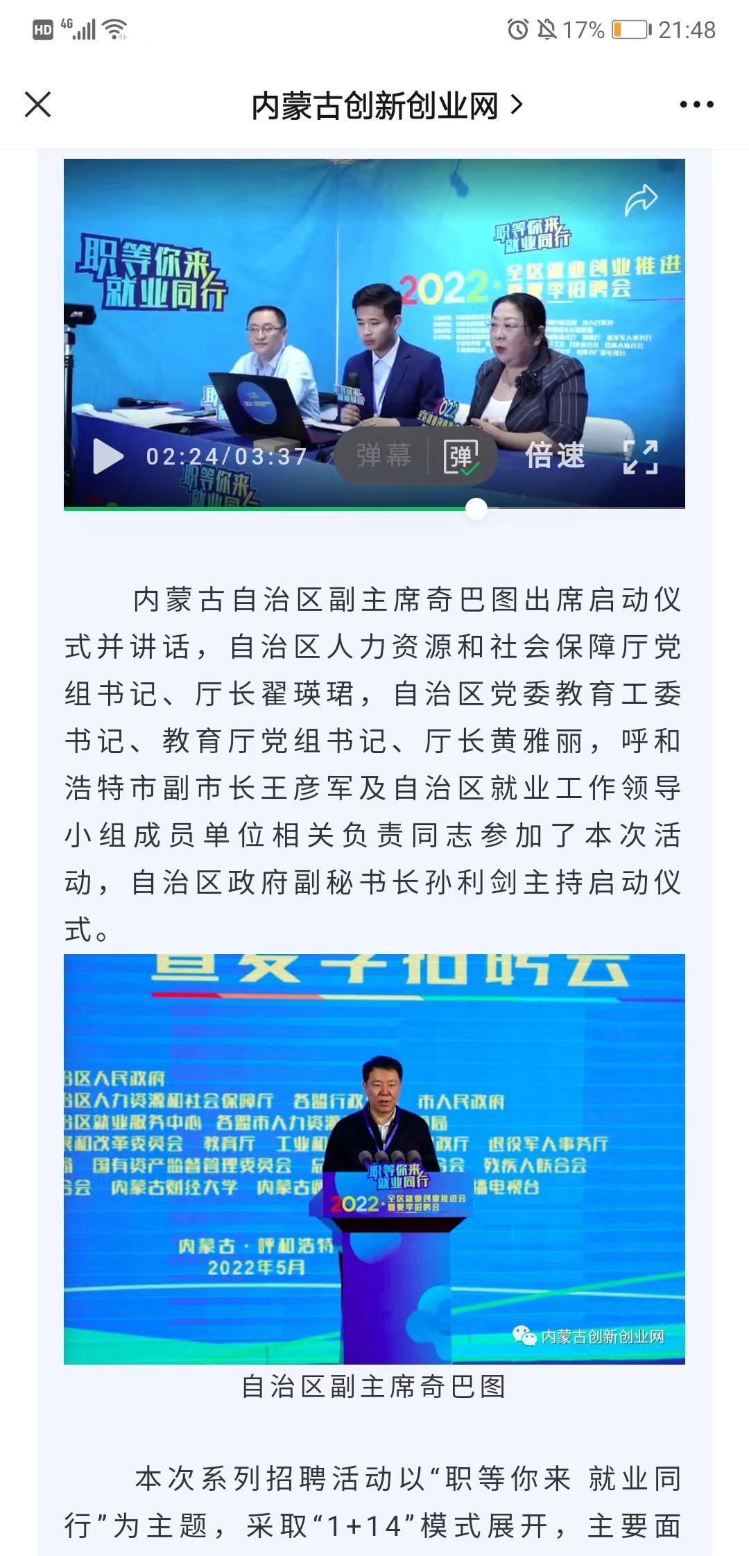 5月22日全天,由内蒙古自治区人民政府主办的2022年全区就业创业推进会暨夏季招聘会在内蒙古财经大学正式启动,各盟市、计划单列市分会场同步启动。