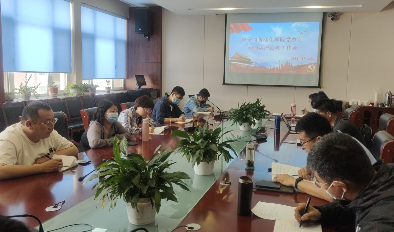 5月26日,电子与自动化学院召开全面从严治党工作会议,科级以上干部、党支部书记参加了会议,会议由党总支副书记石磊主持。