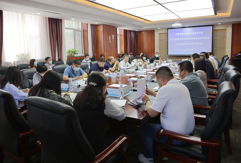 签约仪式结束后,锐捷网络股份有限公司、东方瑞通北京咨询服务有限公司、内蒙古诚友网络科技有限公司、深信服科技股份有限公司、三六零数字安全科技集团有限公司、北京神州数码云科信息技术有限公司、百度时代网络技术(北京)有限公司、大连东软教育科技集团有限公司、三河源通建筑工程有限公司、内蒙古天地通通讯设备有限公司、内蒙古宇世信息技术有限公司、内蒙古创胜电子技术有限责任公司、内蒙古合硕科技有限公司、内蒙古云航无人机技术有限公司、内蒙古纵腾工程设备有限公司、内蒙古园创信息科技有限公司、内蒙古自立科技有限责任公司、内蒙古浩源新材料股份有限公司、内蒙路发运输有限公司、内蒙古圣水矿泉水有限公司、呼和浩特市益诚鸿远政务科技信息服务中心、内蒙古画报社全媒体中心等与会的22家IT企业通过线上、下的形式介绍企业发展现状与用人需求,22家企业共发布了296个工作岗位。