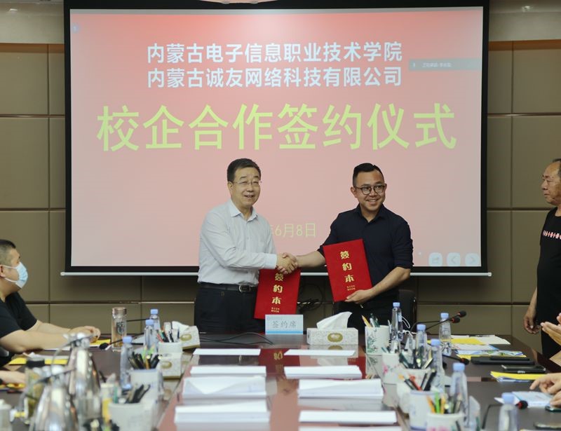 随后,王生铁校长分别与内蒙古诚友网络科技有限公司陈超经理、内蒙古天地通通讯设备有限公司张光跃副经理、内蒙古画报社王文敏主任签订校企合作框架协议。