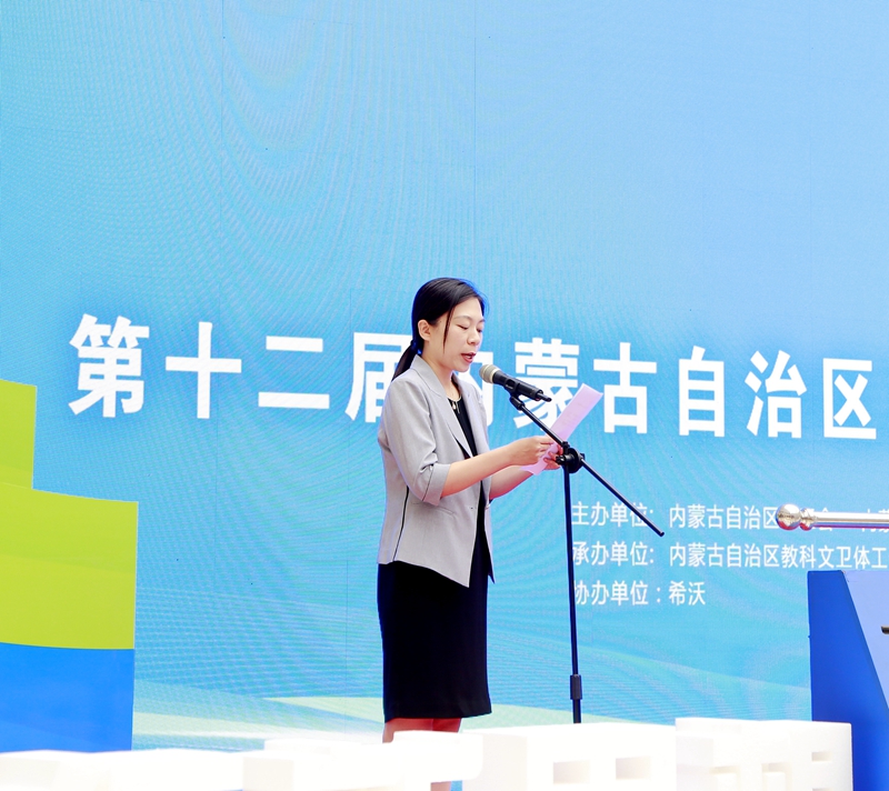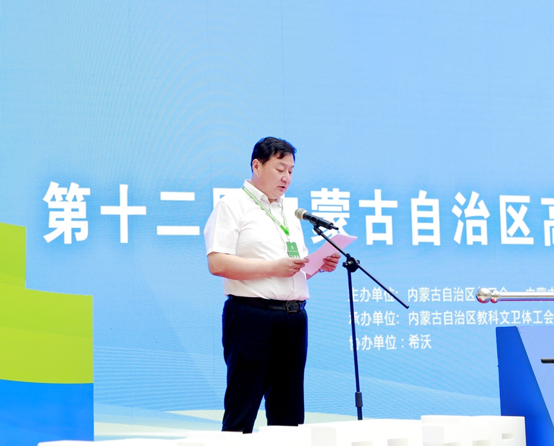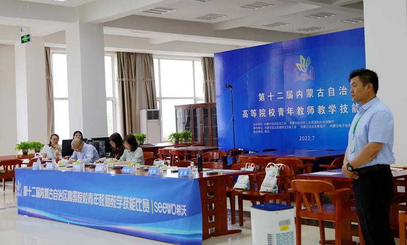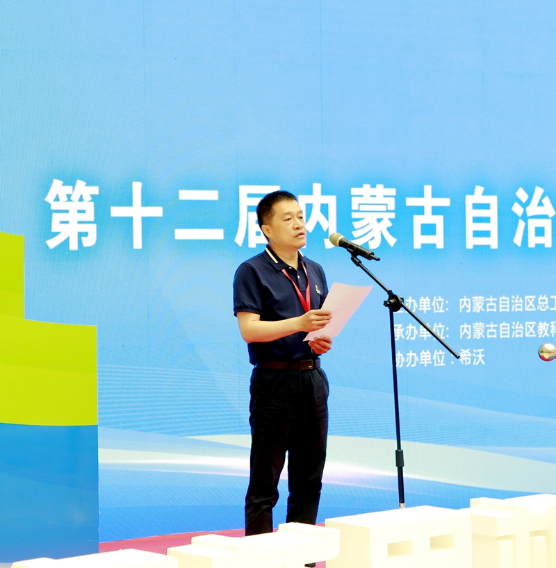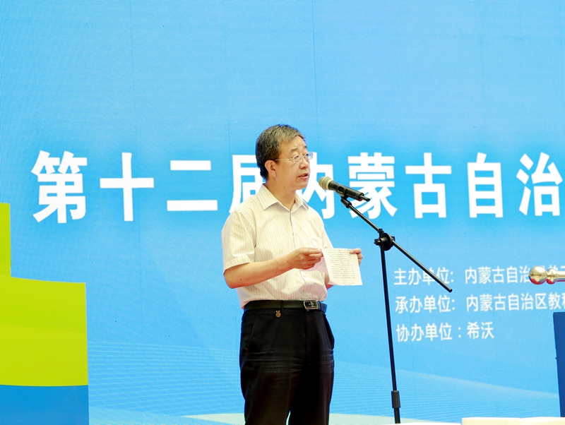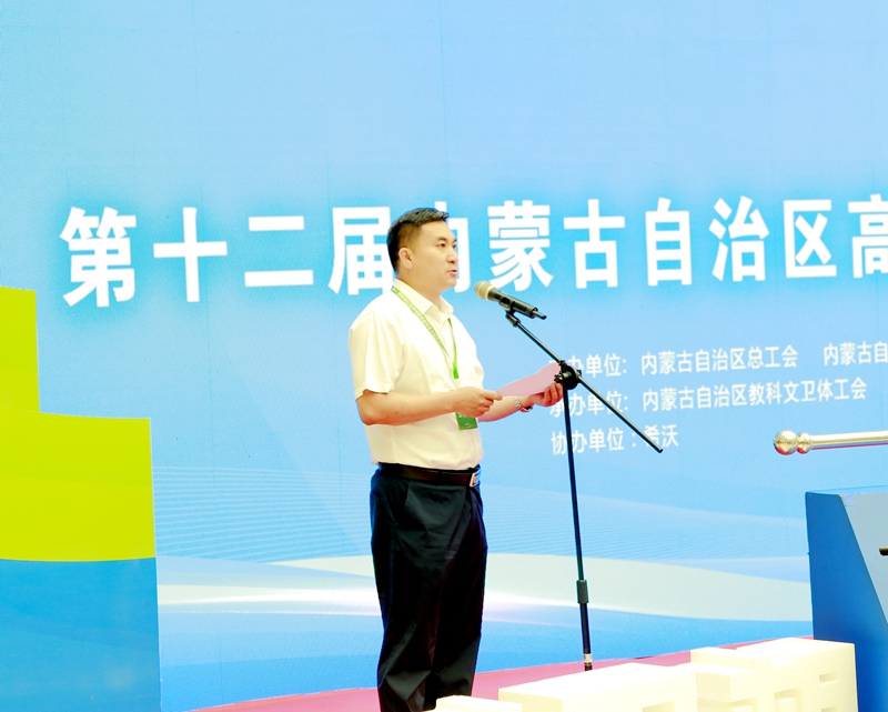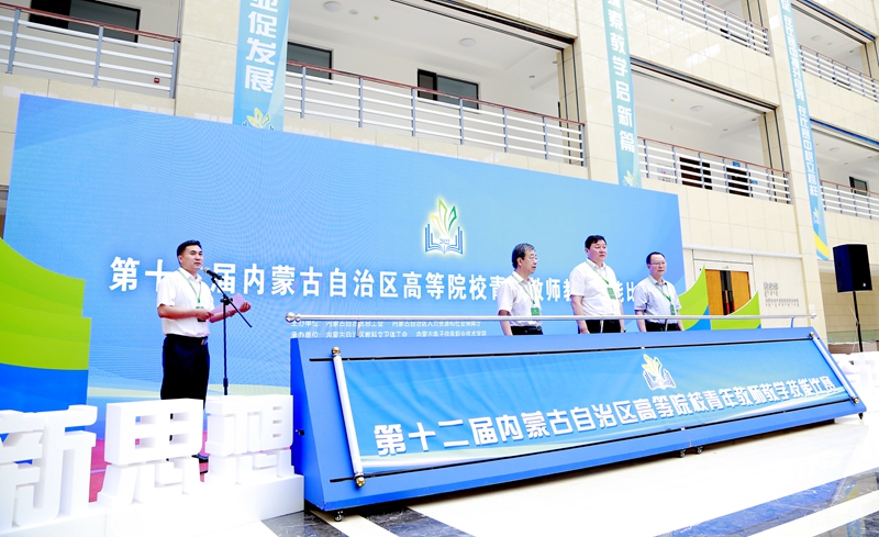 7月11日,由内蒙古自治区总工会、内蒙古自治区人力资源和社会保障厅联合主办,内蒙古自治区教科文卫体工会、内蒙古自治区教育厅、内蒙古电子信息职业技术学院共同承办,广州视睿电子科技有限公司(希沃)协办的第十二届内蒙古自治区高等院校青年教师教学技能比赛在我校开幕。自治区总工会副主席赵大军,我校党委副书记、校长王生铁,自治区教科文卫体工会主席邢亦凡,我校党委委员、副校长恩和门德、秦婷,我校学生工作处处长李耀辉,自治区总工会经济部副部长闫宇文,我校工会副主席杜健炯,广州视睿电子科技有限公司(希沃)内蒙古分公司高职教总经理李俊毅以及42位评审组专家出席开幕式。参赛教师、各代表队领队、观众在线上观看了开幕式直播。开幕式由自治区教育厅学生工作处处长王勇主持。