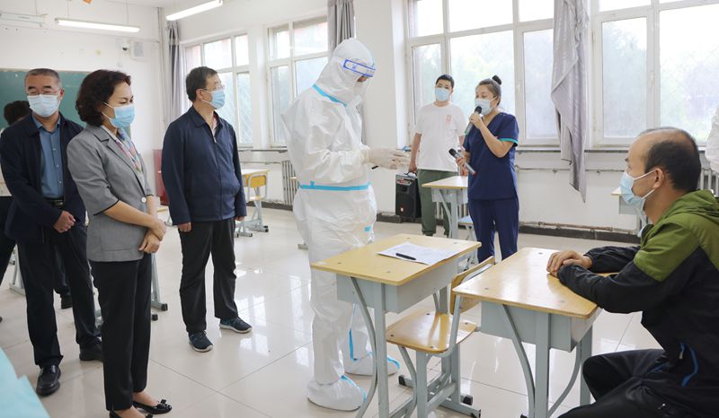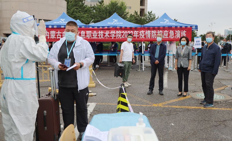 8月23日,学校利用1天的时间开展疫情防控应急演练,抓实抓细我校疫情防控各项工作,提高应对疫情突发情况快速反应、规范处置、联防联控能力,保障师生员工身体健康和生命安全。呼和浩特市赛罕区巴彦街道学苑社区书记兼主任杨振标、赛罕区疾控中心应急办副主任曹洋应邀对应急演练工作进行全程指导。学校党委书记李春燕,学校党委副书记、校长王生铁,学校党委委员、副校长郑志丽、恩和门德、秦婷,学校党委委员、纪委书记刘建英,各二级学院领导班子成员,各职能部门主要负责同志以及医务所、保安与物业公司负责人与各演练组成员参加应急演练。