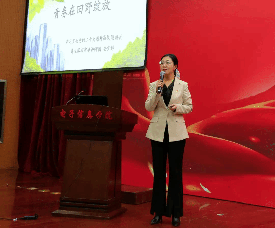 乌兰察布市委讲师团负责人安少婷老师作了题为《青春在田野绽放》的宣讲。