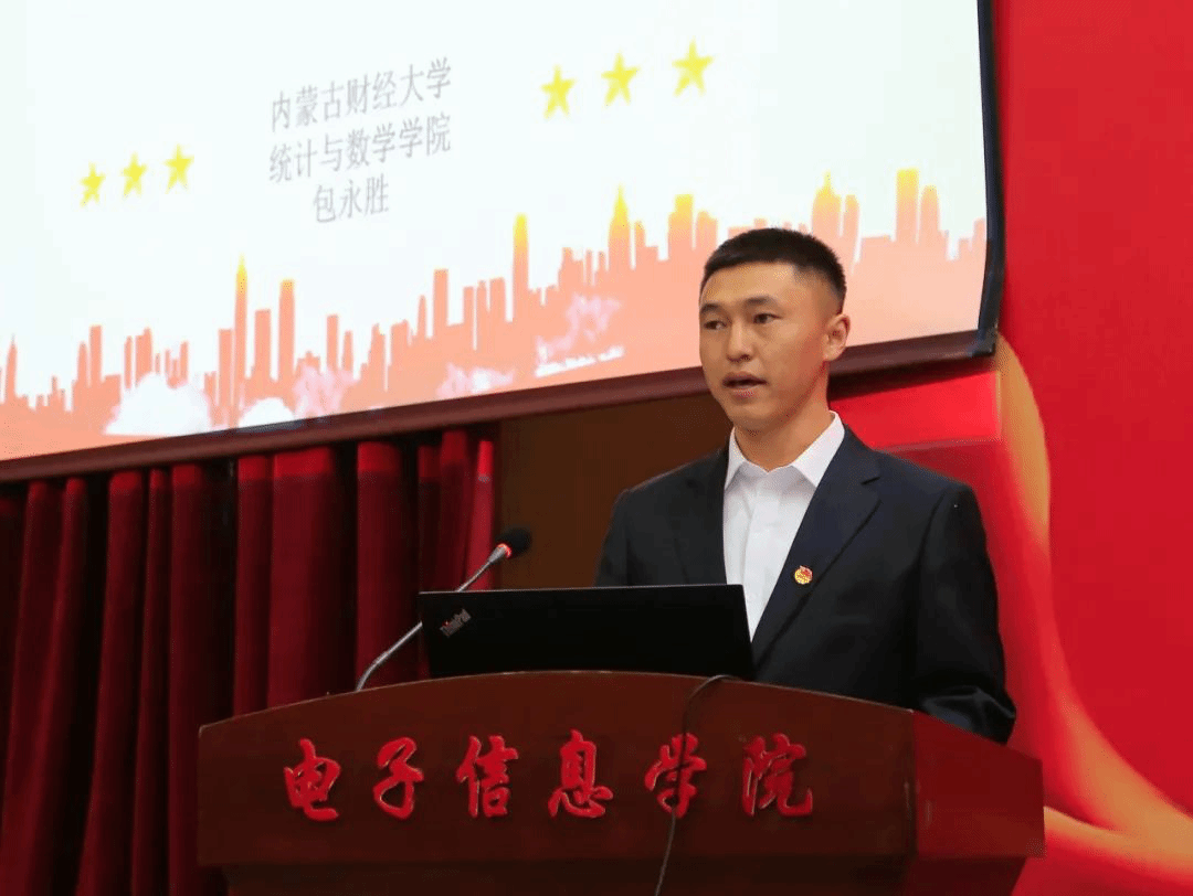 内蒙古财经大学统计与数学学院学生包永胜同学作了题为《清澈的爱,只为中国》的宣讲。