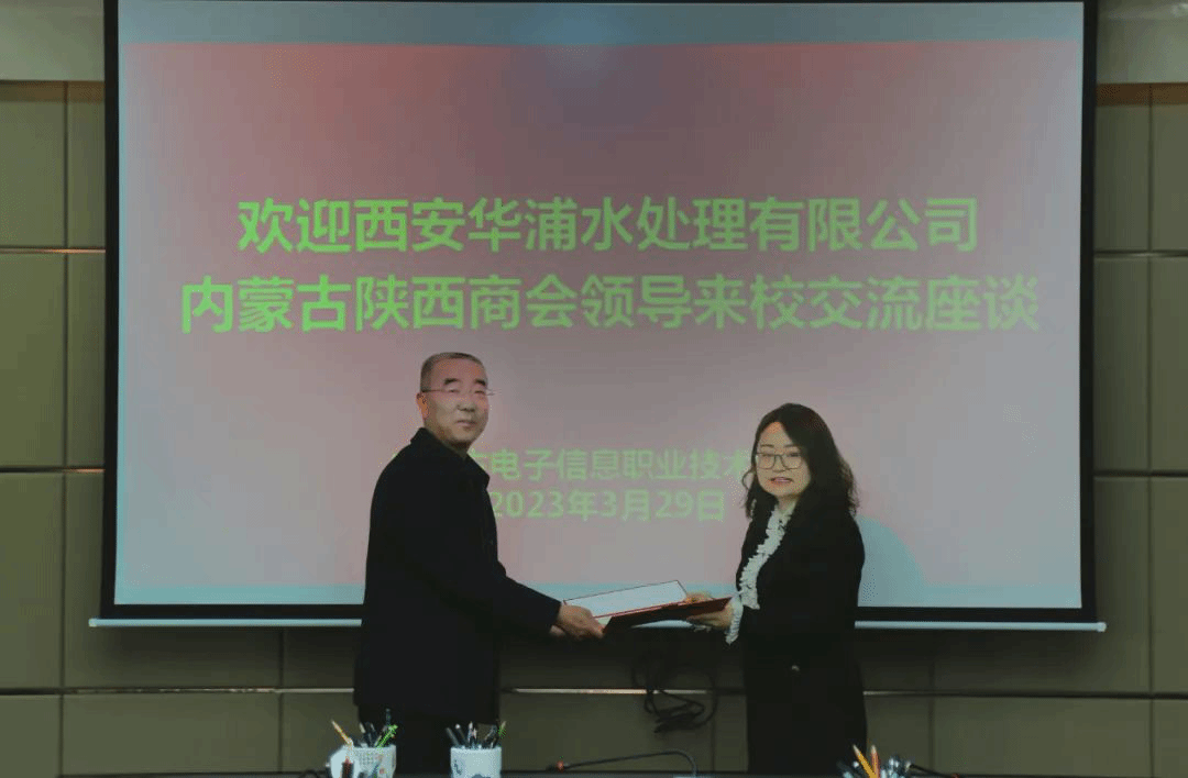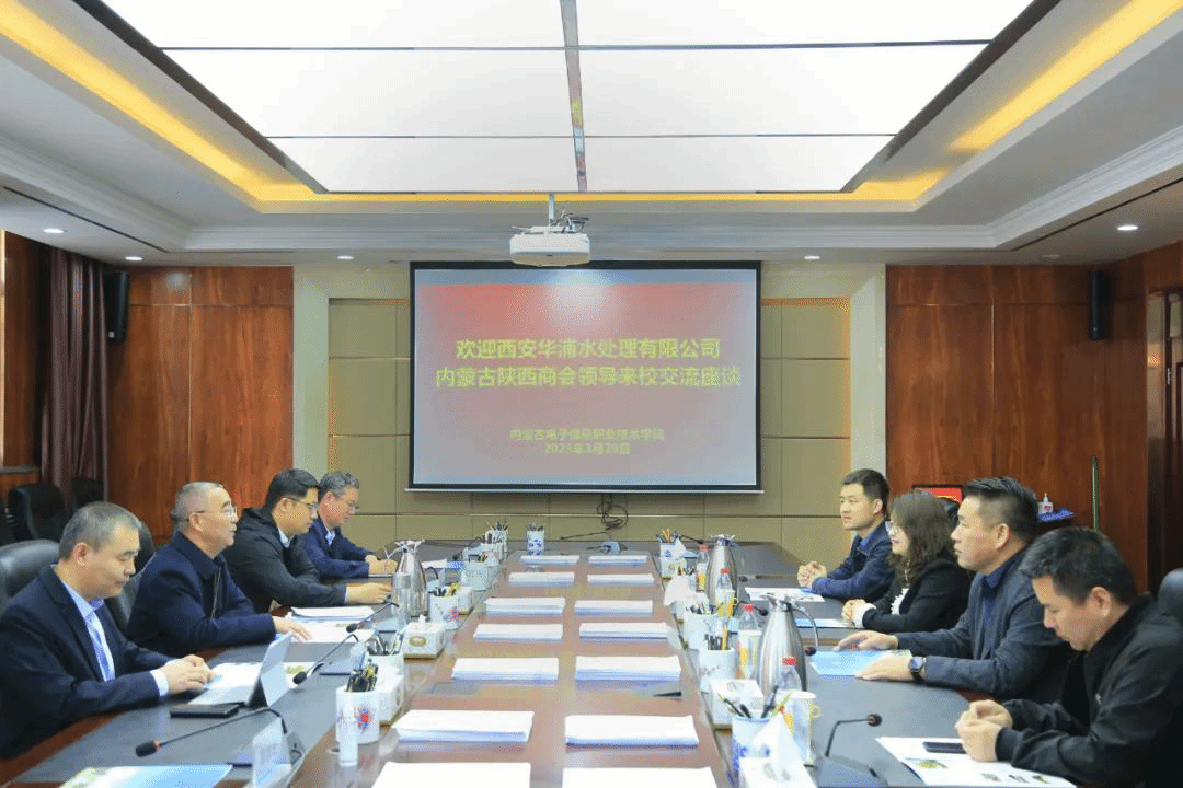 3月29日上午,西安华浦水处理有限公司董事长张玫、内蒙古陕西商会秘书长周全峰一行应邀莅临我校,出席交流座谈会。我校党委委员、副校长恩和门德,党委委员、组织部(统战部)部长王凤岐及相关部门负责人参加会议。
