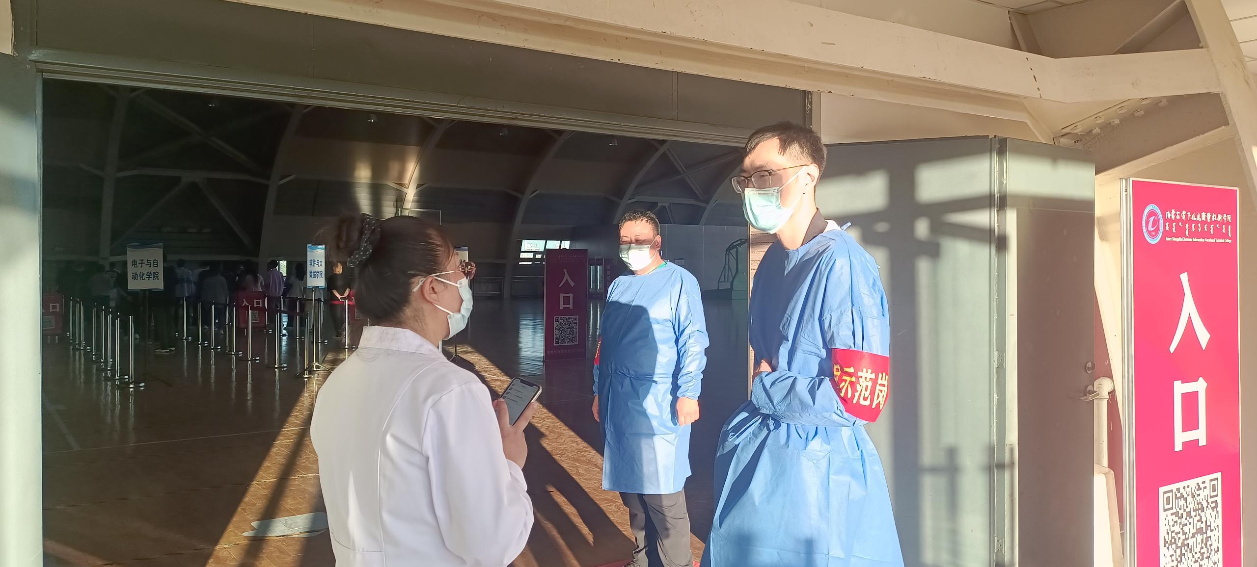 众志成城,齐心抗疫。党员志愿者们精心协助每一次核酸检测,耐心维持每一列排队秩序,热心护航每一位师生。哪里有需要,哪里就有共产党员的身影,哪里有需要,哪里就要有共产党员的担当,他们用党员的一颗颗“初心”践行了共产党人的使命担当,为师生筑起了一道道“红色屏障”。