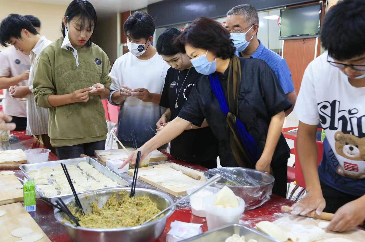 “家是哪里的?”“学校的饭吃的习惯吗?”“祝你们中秋节快乐!”每到一处,都有校领导与学生亲切交流、了解学生学习和生活情况的画面。在学生食堂,李春燕实地查看了学生食堂的菜品情况,特别强调食堂是学生生活保障的重要场所,要进一步加强食堂管理,不断丰富菜品种类,注重营养搭配,提升饭菜质量,创新服务意识,努力为学生创造温馨、祥和、美好的饮食就餐环境和氛围。在教工食堂李春燕还参加了电商学院学生的包饺子活动。