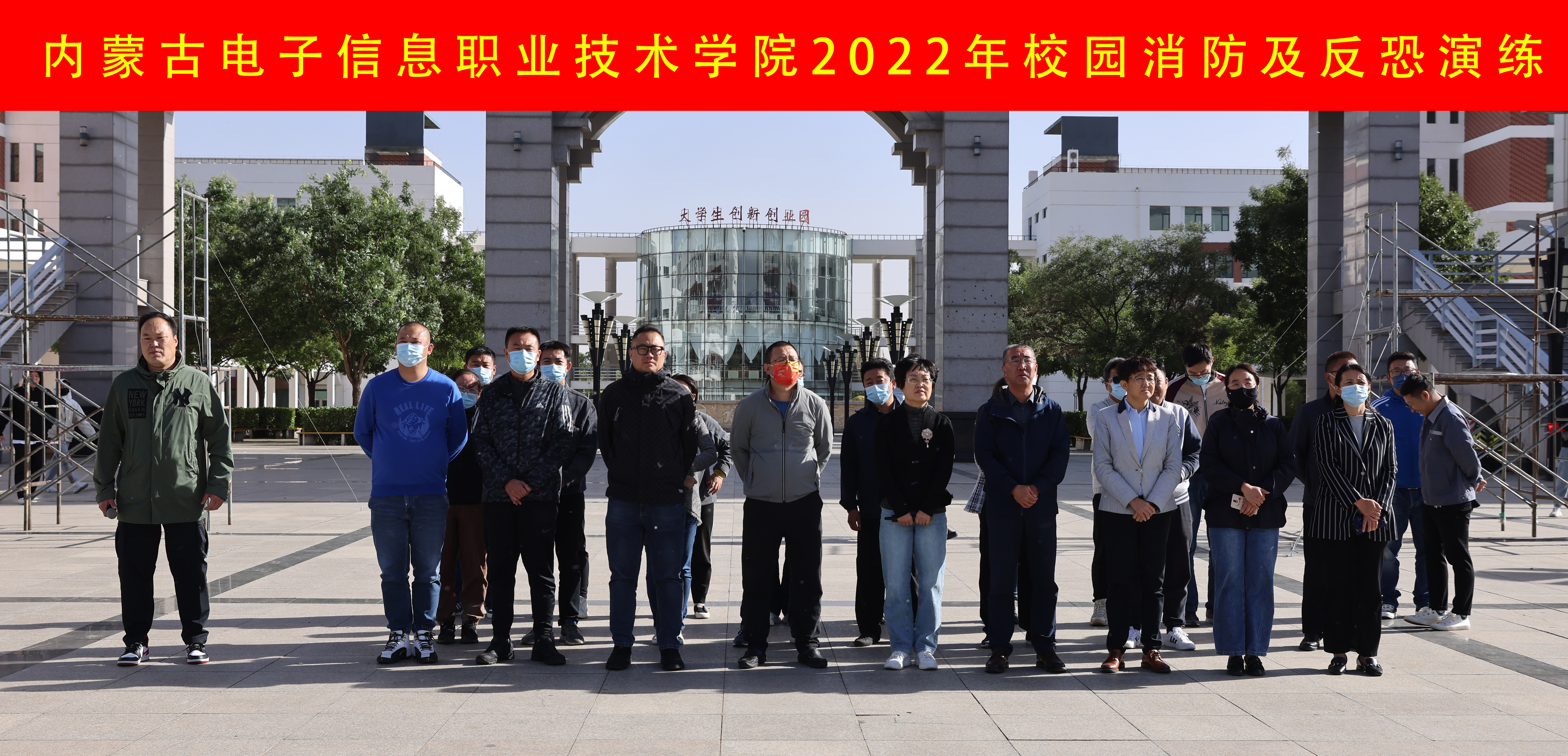 9月22日下午,学校在教学楼广场和校园北门开展了2022年校园消防及防暴应急演练。此次活动由安全保卫处组织,学校党委委员、副校长恩和门德、秦婷,学校党委委员、纪委书记刘建英及二级学院负责人出席,共有280名学生参加演练,赛罕区消防中队及大学城派出所协助演练。