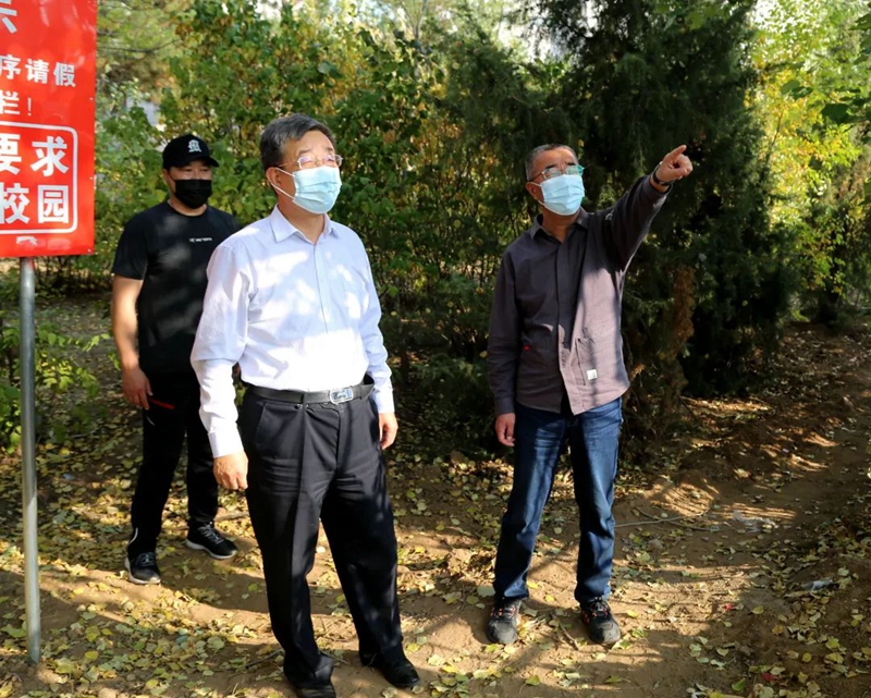 为持续做好当前疫情防控工作,进一步落实重点区域、疫情防控场所防控措施,筑牢安全保护屏障,夯实校园安全基础,确保学校持续安全稳定,10月2日下午,学校党委副书记、校长王生铁带队开展了校园安全大检查,学校党委委员、副校长恩和门德、秦婷,宣传部、后勤管理处、保卫处相关负责人陪同。