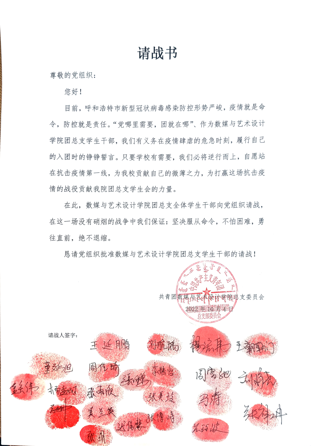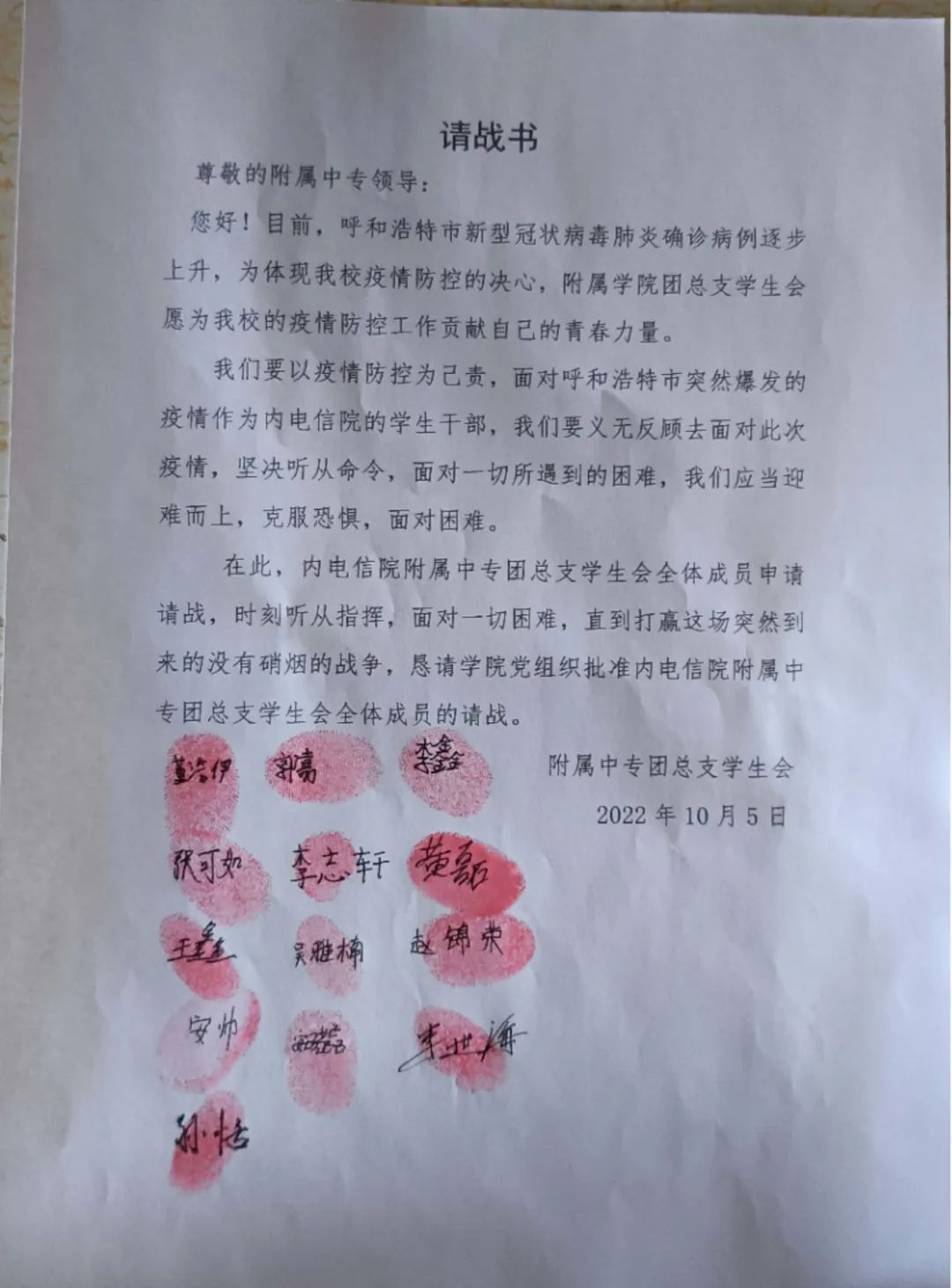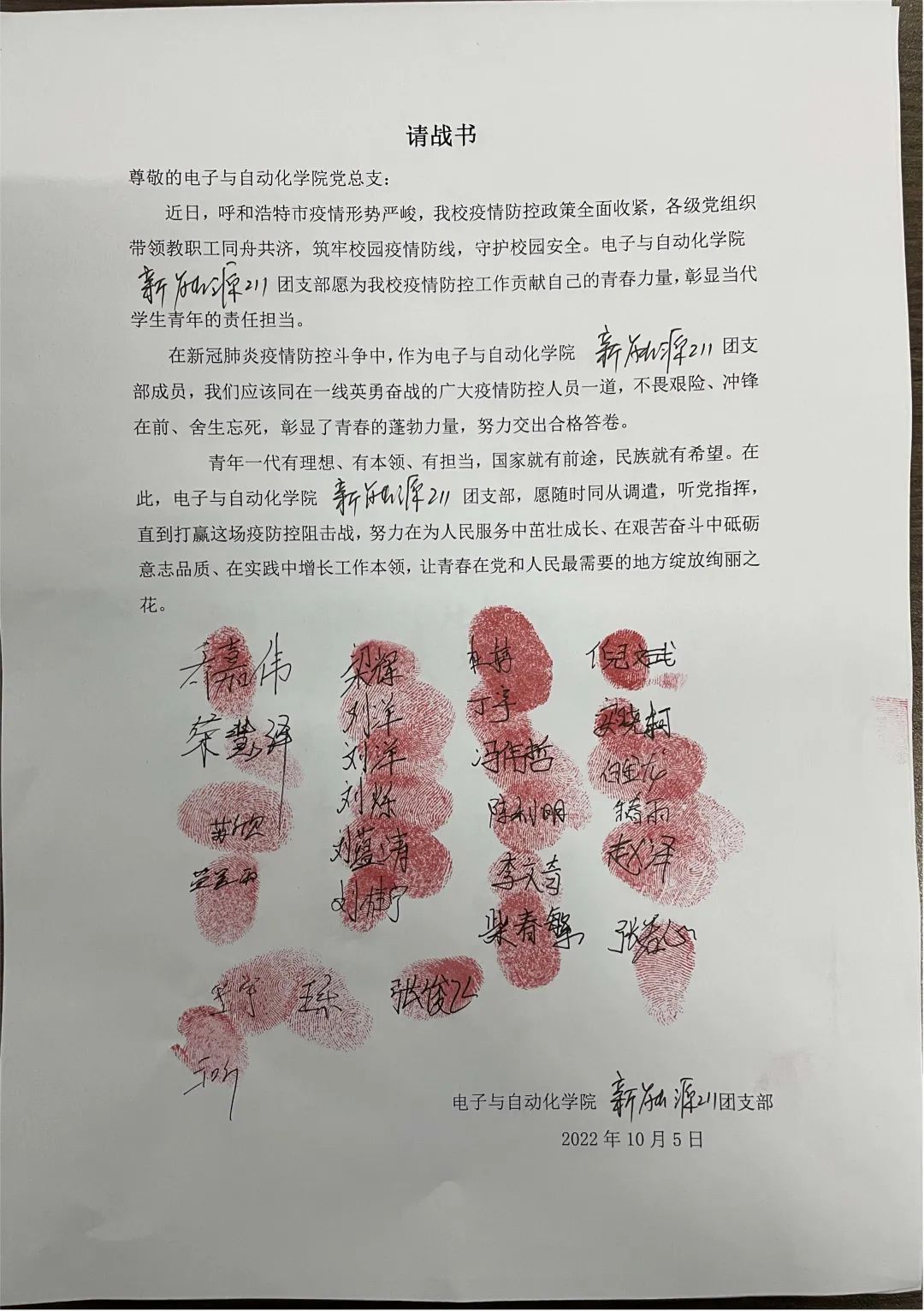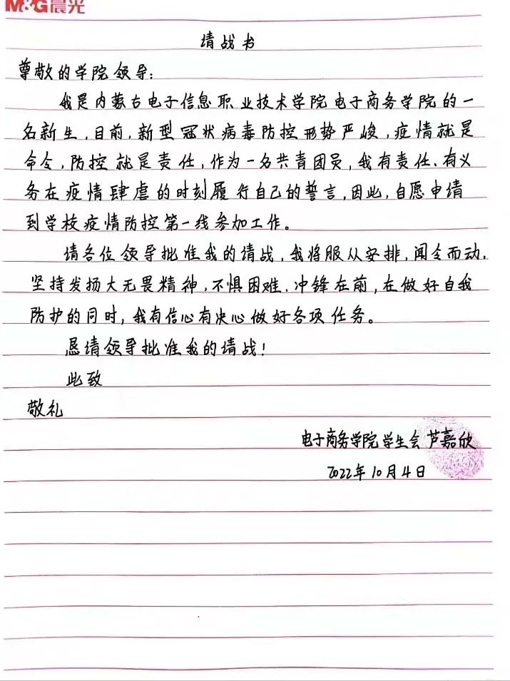 “国家有难匹夫有责”,青年志愿者们第一时间站出来请战,站出来承担历史使命。从他们身上看到了新一代青年的责任意识,担当意识,我们坚信只要大家团结一心,众志成城,定会打赢这场没有硝烟的战争。呼市加油!电子加油!